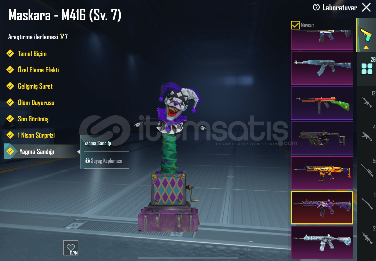 57 DESTANSIGİZEMLİ SOYTARI ZIRH-X SV 3KÖPEK BALIĞI SETİMASKELİ MEDYUM SETİBUZUL CADISI SETİBUZ KASKŞEYTAN BOYNUZKIRMIZI BURUNYARIŞÇI ÜSTÜTWD ÜSTLERİMAVİ FORMA4 MATARYEL8 ADET ID KARTI+760 UC VARDIR26 YÜKSELTİLEBİLİRMASKARA M416 SV 7KERTENKELE M416 SV 4BUZ DİYARI M416 SV 4BALKABAĞI SCAR-L SV 4BUZ DİYARI AKM SV 4MOR İNTİKAM AWM SV 4BUZ SARKITI MİNİ14 SV 4TEL-MA&#...