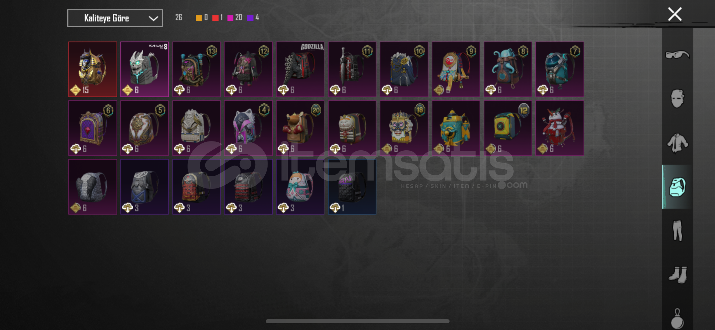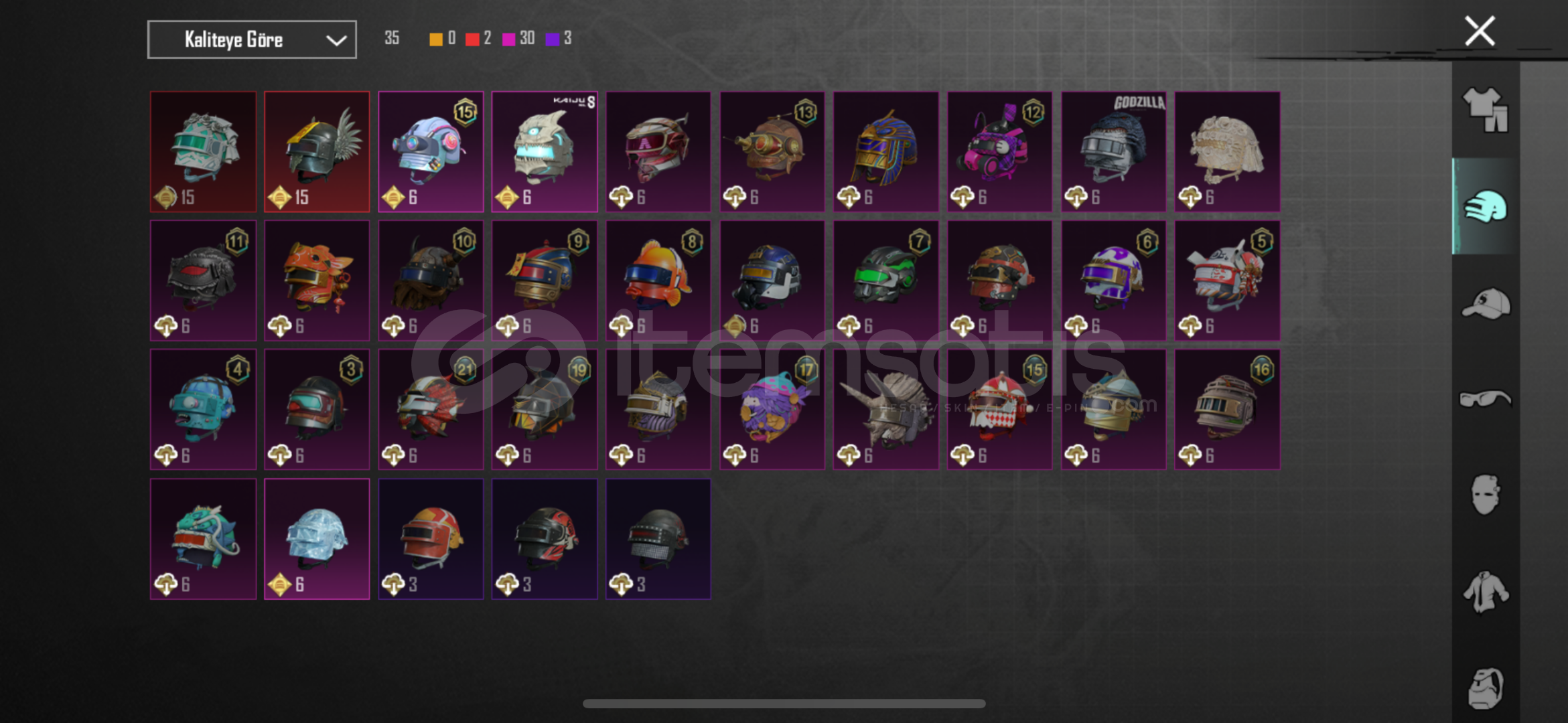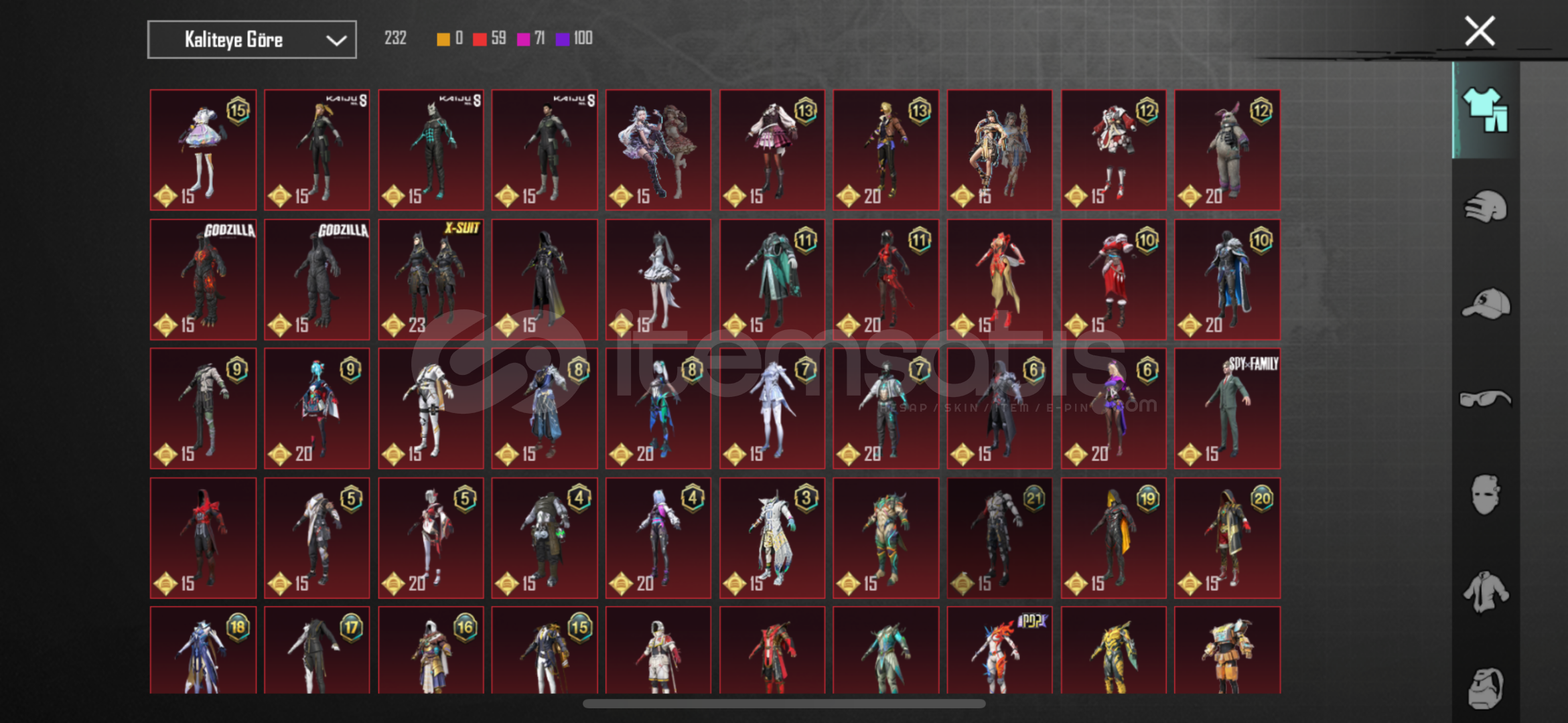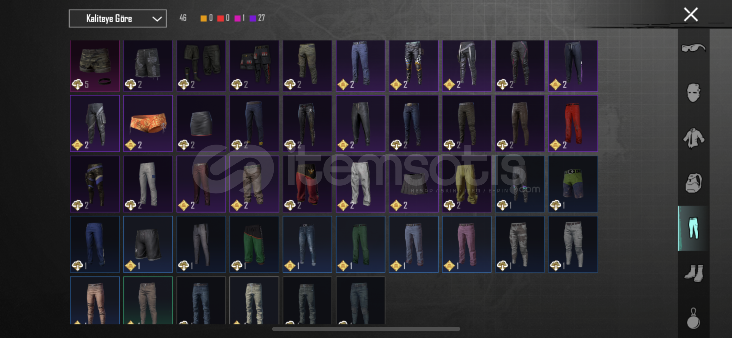57 seviye koleksiyon 91 destansı 27 yükseltilebilir 2 x-suit