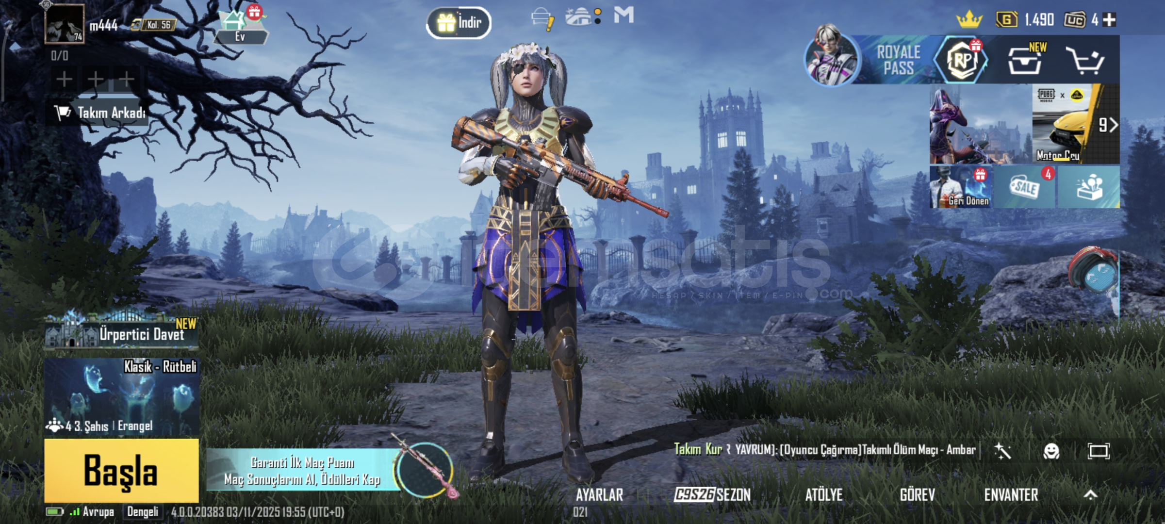 Merhaba funshop'a hoş geldiniz hesapta 2 tane bağ bulunmakta telefon numarası ve e-posta ikisi de sizinki ile değiştirecektir hesapta nihai set ve firavun bulunmakta koleksiyon seviyesi 56'dır neredeyse her araçta desen bulunmakta 3 tane m416 deseni vardır 12 tane de yükseltilebilir var hesapta başka sorunuz varsa yazabilirsiniz