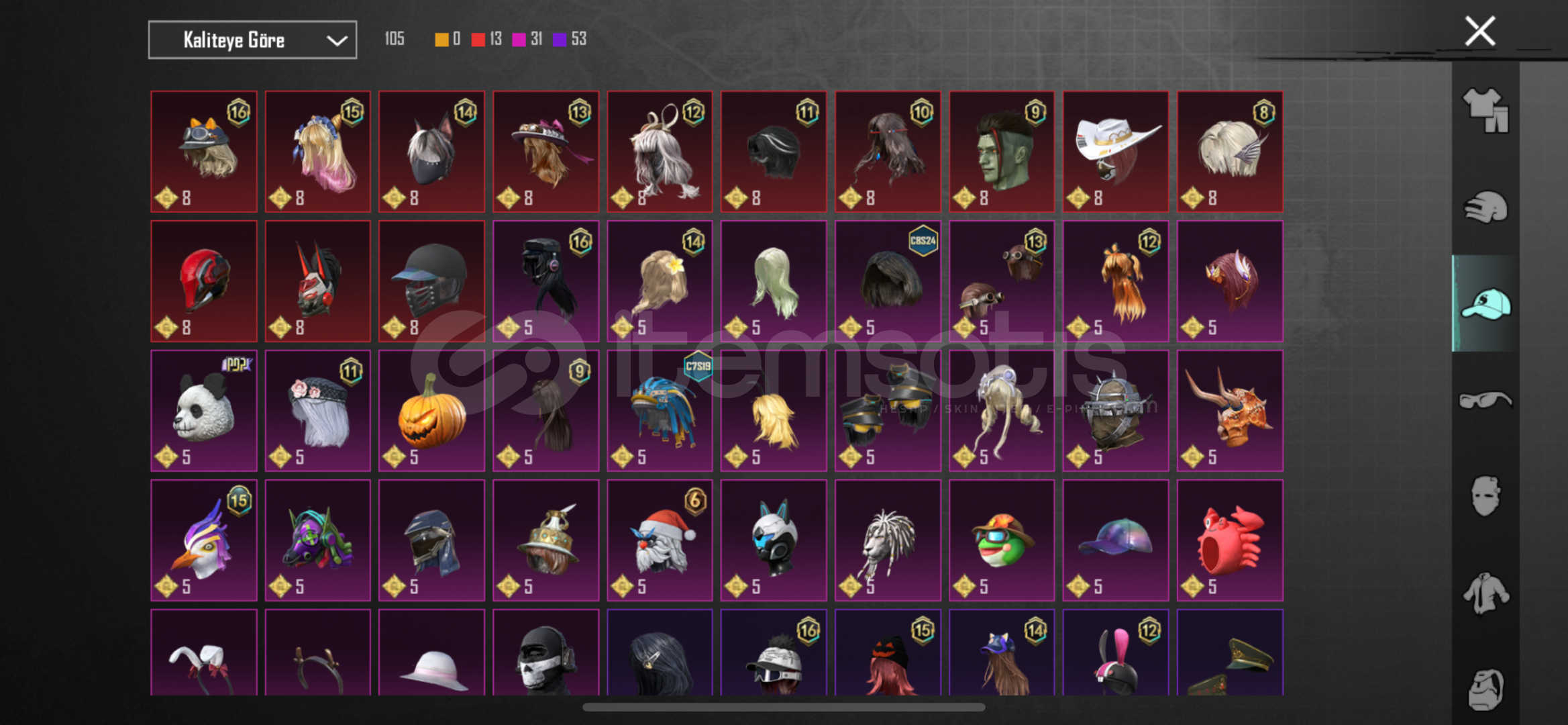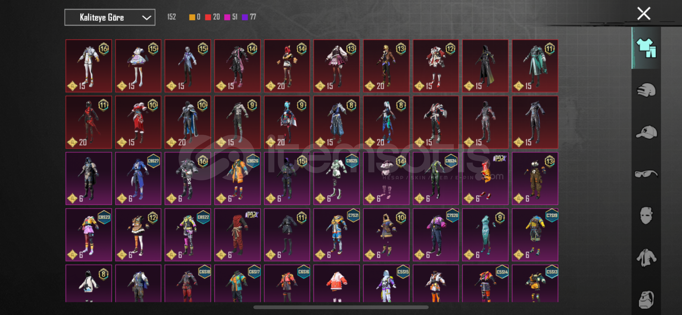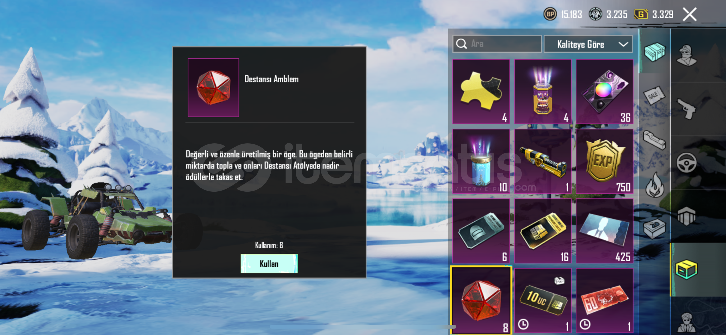 Dostum Pilaf Yoldaşı var.Hesapta 6 Sv Buz diyarı ve buna ek olarak 14 adet geliştirilebilir silah deseni var. (Royale Pass ve Premium sandıktaki silahlar.)Son 9 RP Açıldı.Hesapta 8 adet destansı amblem bulunmaktadır.(Mythic Force Parası)Amansız Suikastçı Seti.Hesabın envanterinde ID kartı, 1 Adet Materyal, 1350 Ev oyu ve ortalama 15K popülerlik vardır.Koleksiyon Seviyesi : 49Derslerime ağırl&#...