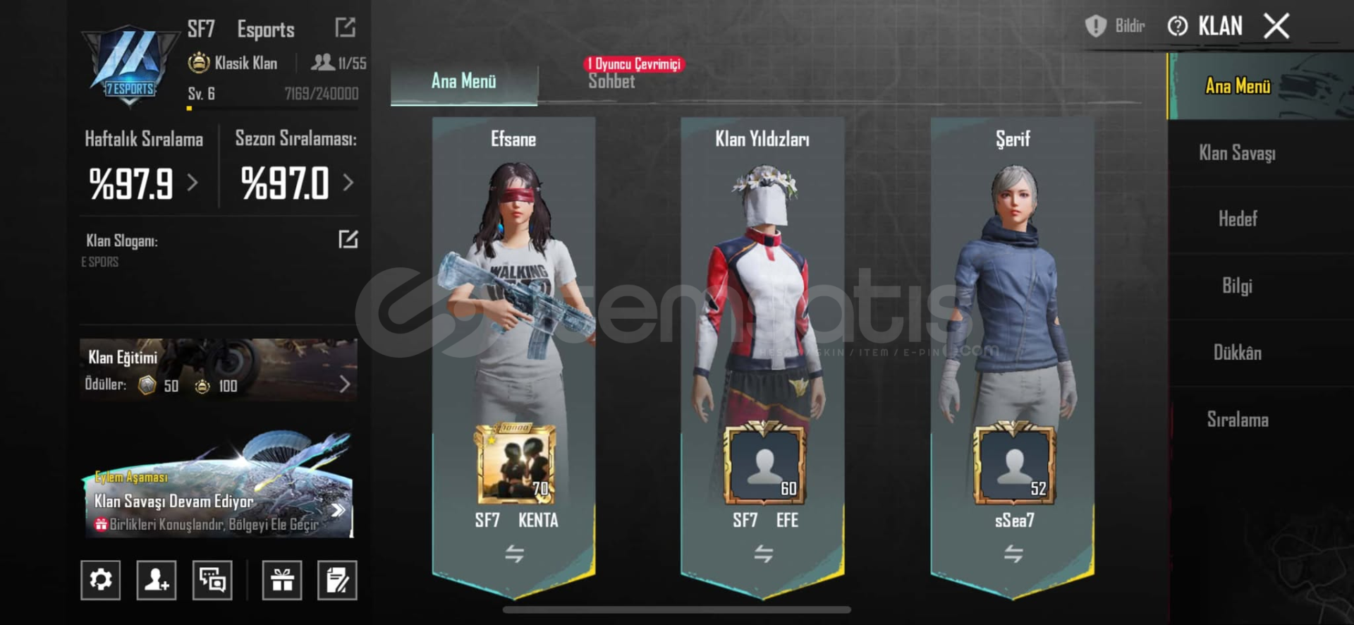 6 SV Pubg Mobile Klan İsim var