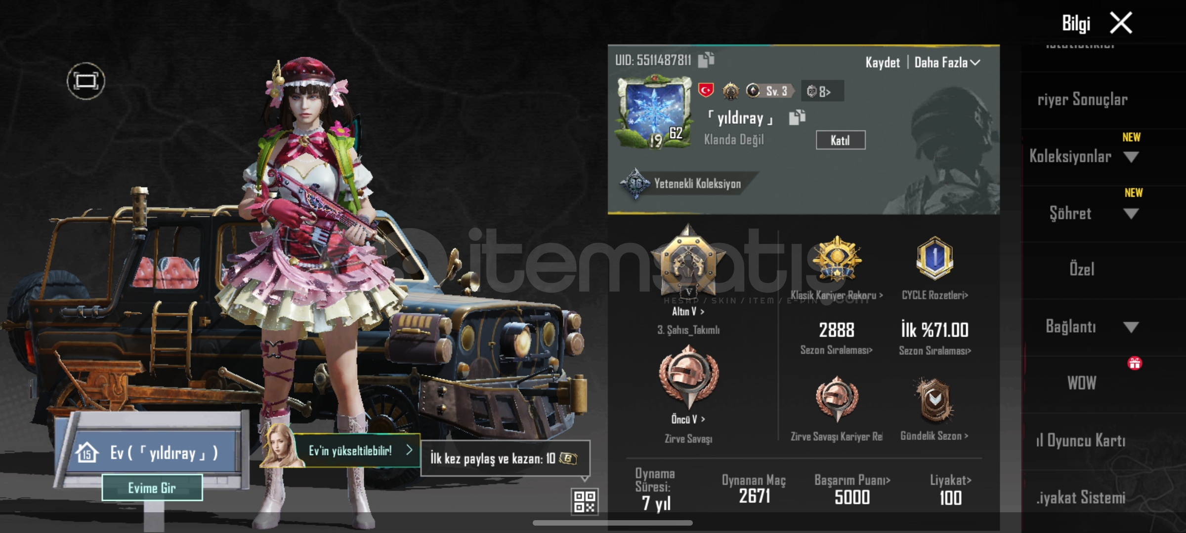 Baska hesaptan oynadigim icin bu hesabi kullanmiyorum