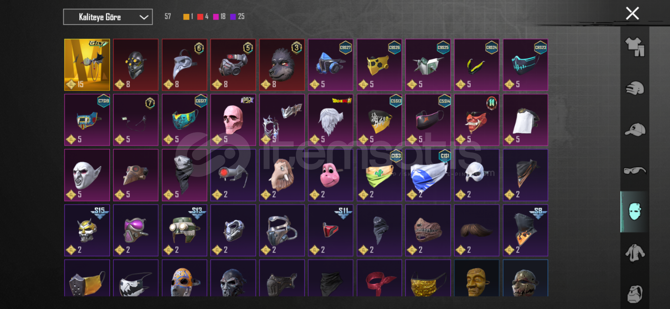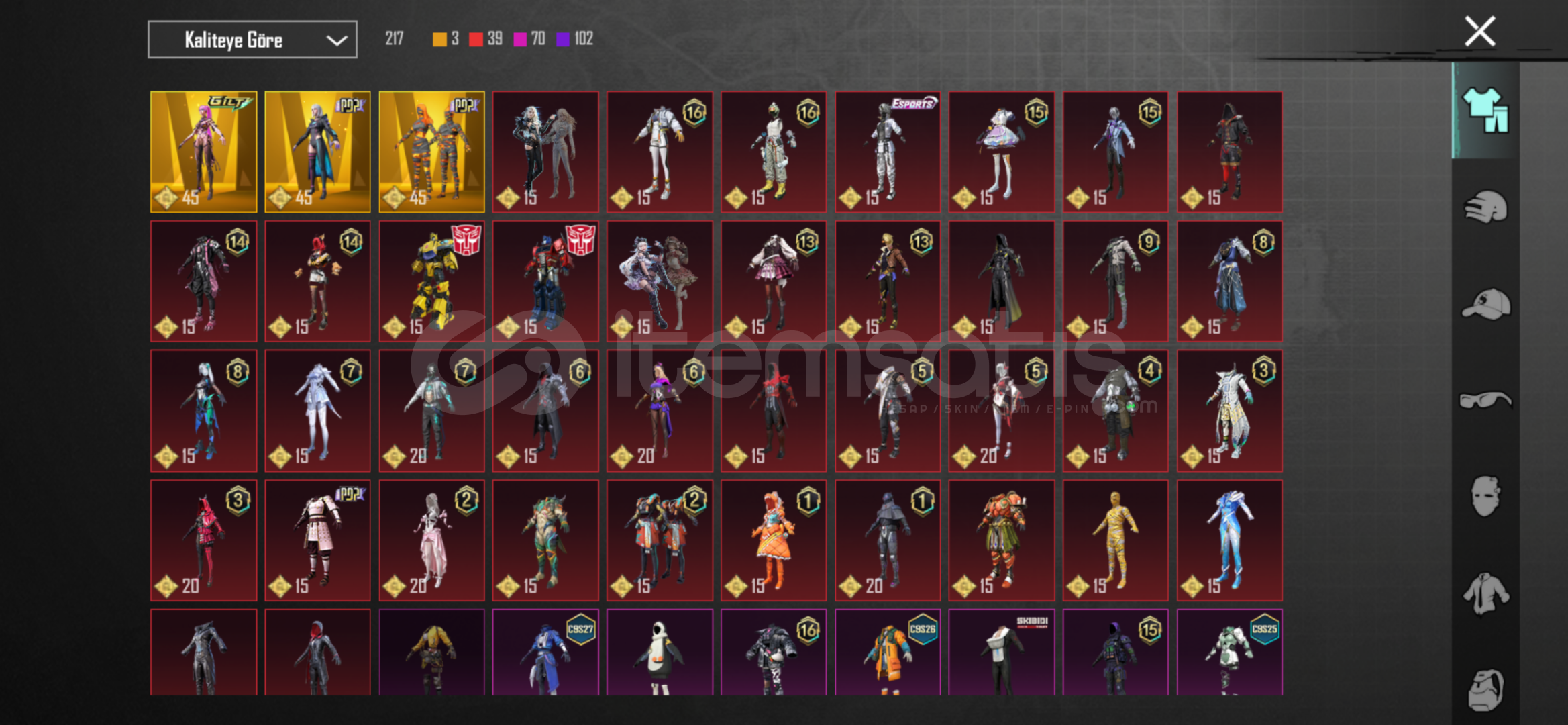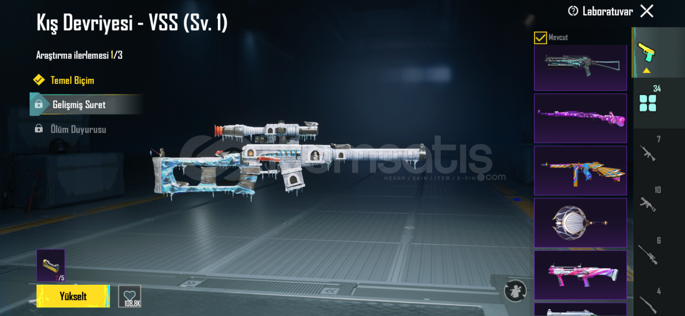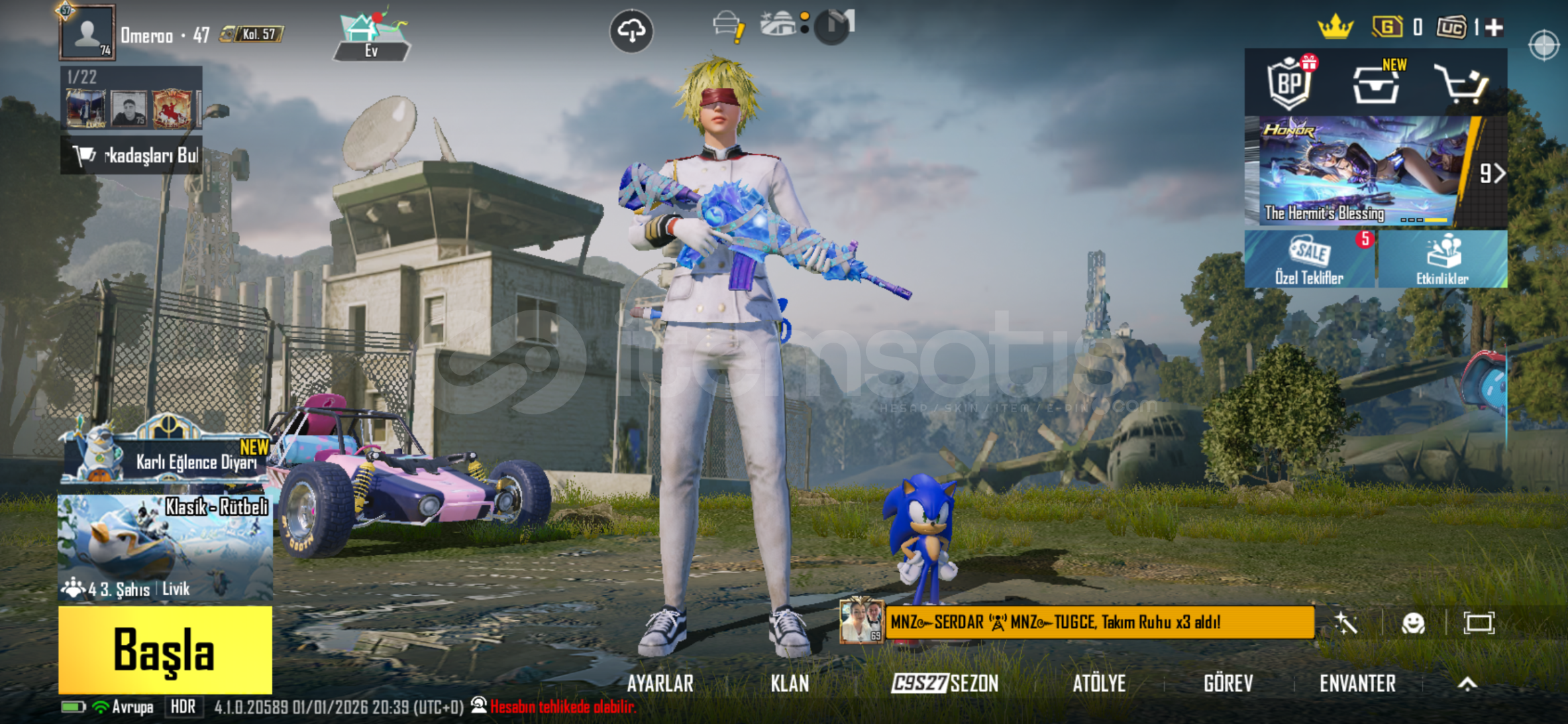 62DESTANDI ÖĞE7NİHAYİ ÖĞR 34 YÜKSELTİLEBİLİR SİLAH74SEVİYE HESAPZİNCİRLİ CEHENNEM UZİ 4SVHAYALET KOD BİZON 4SVKANLI DİKEN KAR98K 3SVMÜHÜRLÜ YERALTI M416 4SVMEKA EJDER VEKTOR 1SVBUZ M416 1 SVSONİC YOLDAŞ SON SVYE