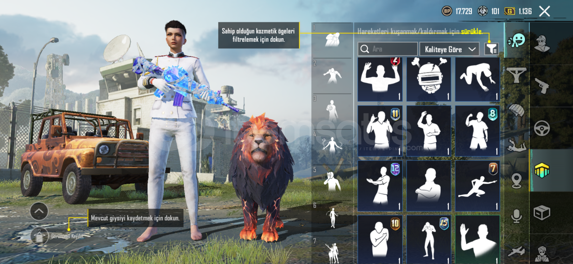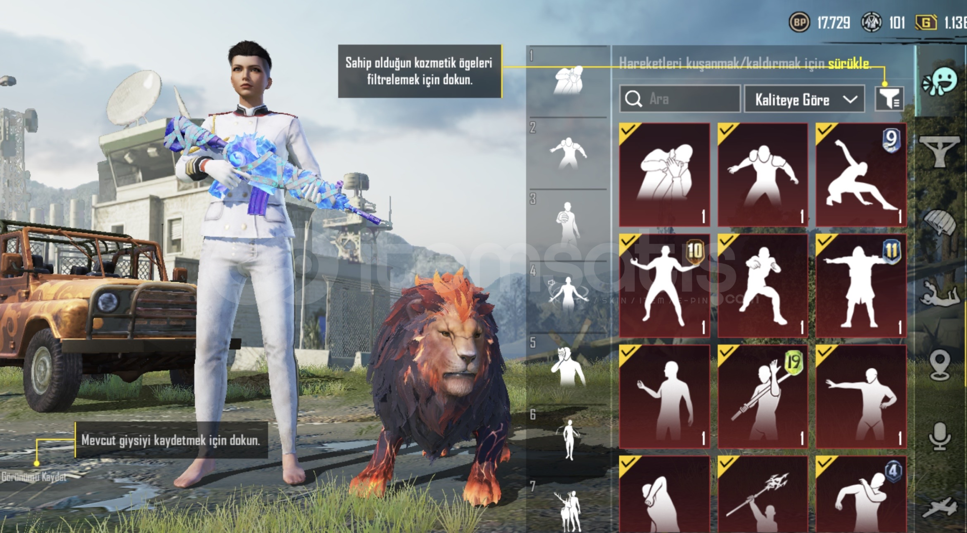 arkadaşlar herşey fotoğraflarda gördüğünüz gibidir aklınıza takılan birsey olursa yazmanız yeterlidir..Ölü bağ yoktur form geçmişi temizdir…🫵🏽komutan full alt üst şapka crew vardır sezon2 emojiler ve eski sezon kıyafetler baya vardır… nadirimsi bir hesap…
