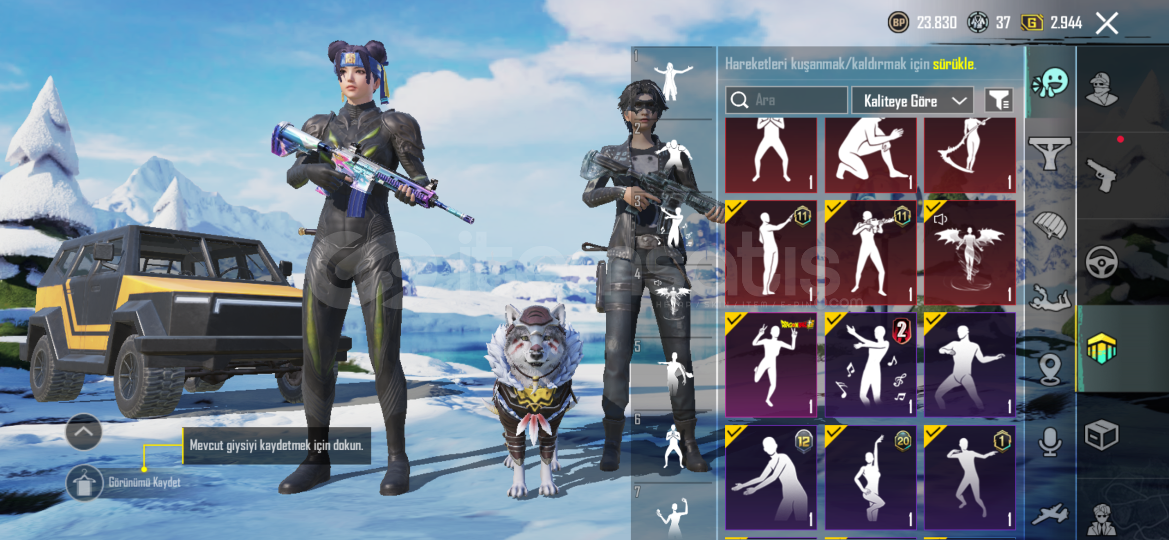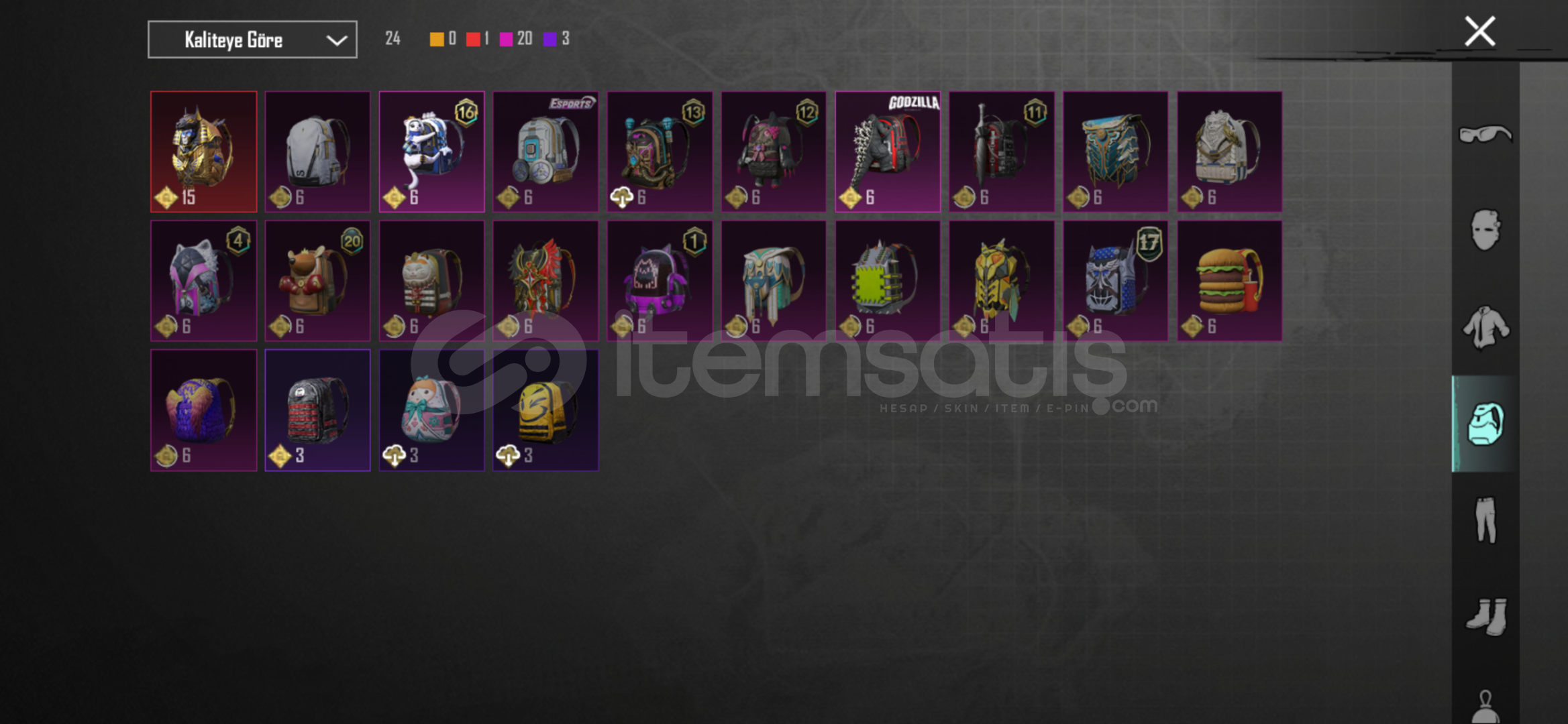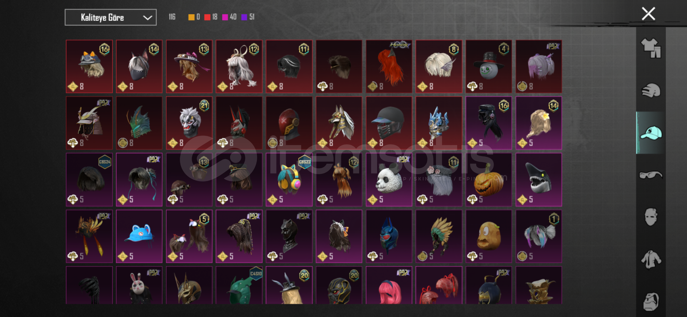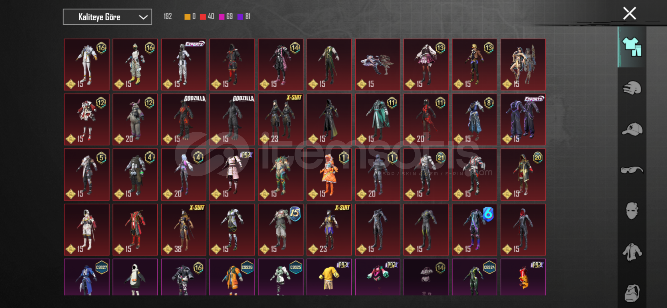 Hesapta 3 adet x suit ve nadi destansı kıyafetler bulunur. 19 adet yükseltilebilir hesap bulunur. Ölüm duyurulu silahlar. Destansı plançrler ve kaliteli emojiler var.