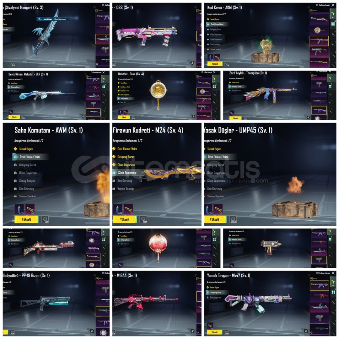 Ürün Hakkında Bilgiler⭐️⭐️[ 63.Seviye⭐️[ 46.Sv Koleksiyon⭐️[15 Adet Yükseltilebilir⭐️[Tundra Şövalyesi Hançeri 3.Seviye⭐️[Deniz Rüyası Melodisi-SLR 1.Seviye⭐️[ Saha Komutanı-AWM 1.Seviye⭐️[Cağlar Sirki-Arbalet 1.Seviye⭐️[Gece Gladyatörü-PP-19 Bizon 1.Seviye⭐️[Lider Panter-DBS 1.Seviye⭐...