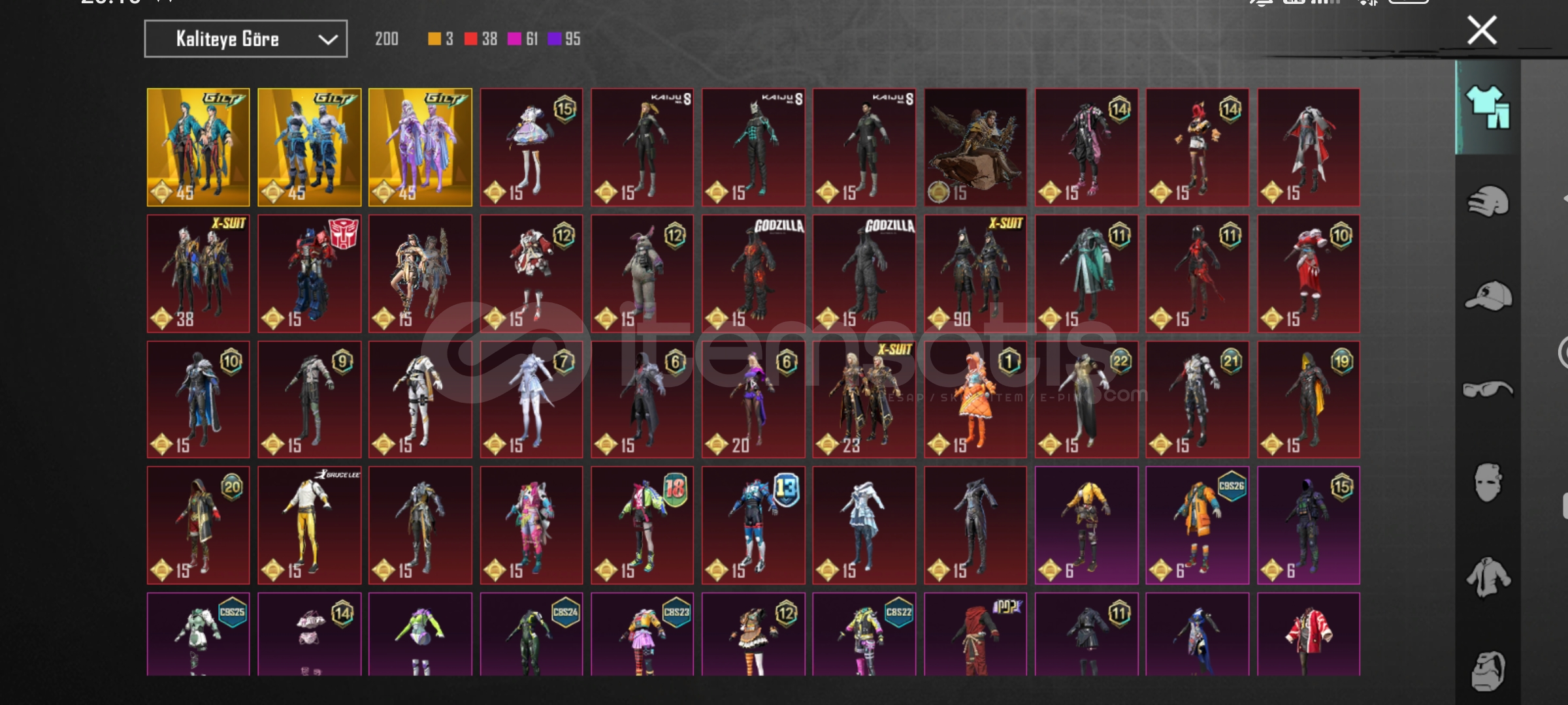 3 tane x-suit26 gelişmiş silah3 adet nihai setYakan kükreme m416 6 svRuhbicen ump 4svKahramanlık Ağıdı ama 4svFiravun çantasıCehennem kaskı(Ve +++)Pazarlık vardır.Alana hayırlı olsun