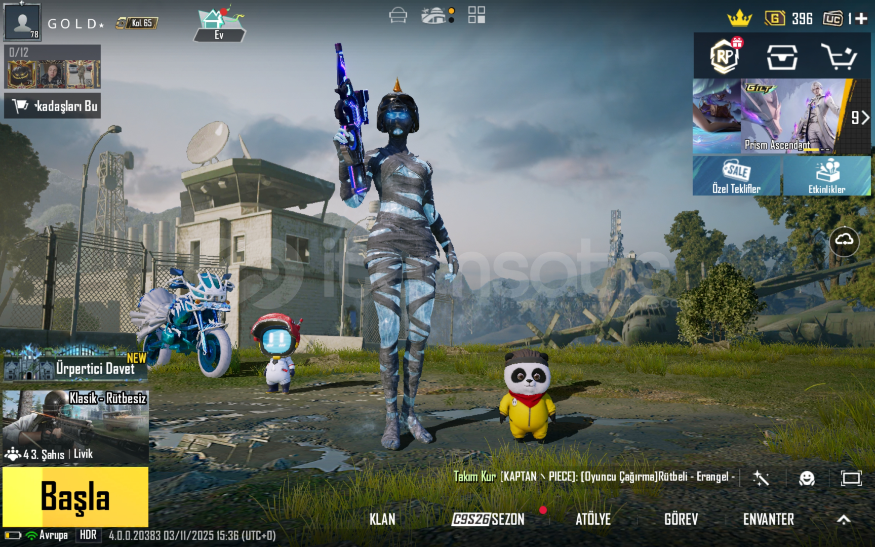 65 koleksiyon seviyesi 130 destansi 34 yukseltilebilir 10 ölüm duyurusu Komutan seti ful crew var dikenli kask mumya sarı mumya buzul mumya harici 50 yakın özel set firavun çantası