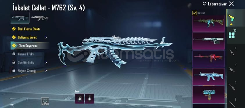 66 KOLEKSİYON125 DESTANSIYakan Kükreme M416 5 SeviyeYıldız Denizi Amirali M416 1 SeviyeFantastik Diyar Scar-l 1 SeviyeOrman Baskını Groza 2 Seviyeİskelet Cellat M762 4 SeviyeÖldüren Nağmeler 2 SeviyeSessiz Ruh AMR 1 SeviyeBuzul Çekici Uzi 2 SeviyeBuz Salkımı Kristali UMP 3 SeviyeAltın Pençe P90 3 SeviyeLider Panter DBS 1 SeviyeAtomik Tetik S12K 1 SeviyeYükselen Ejderha MG3 4 SeviyeYaldızlı Yeşim Ej...