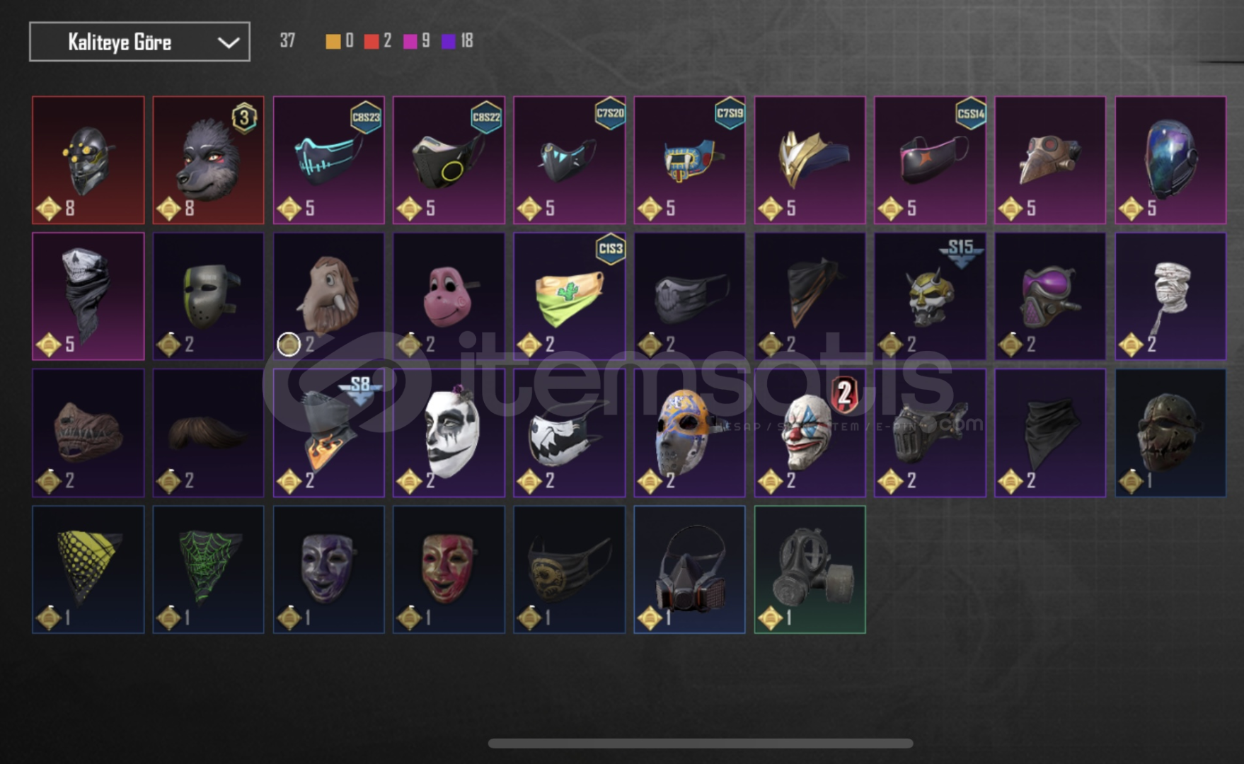 s2 seti gibi cok item vardir hepsini belirttim
