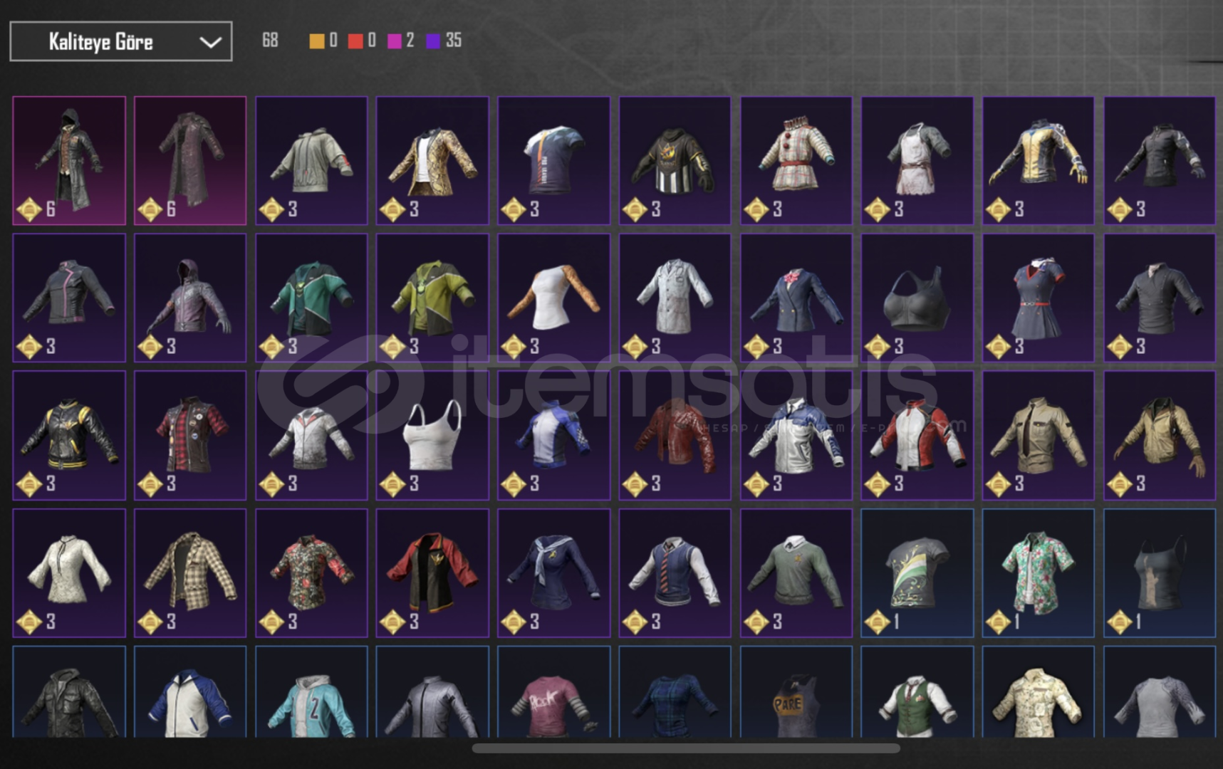 66 level 8 yükseltiliri bulunur 29 destansıkarol gtagmen parsecGodzilla setleris2 seti gibi cok item vardir hepsini belirttim