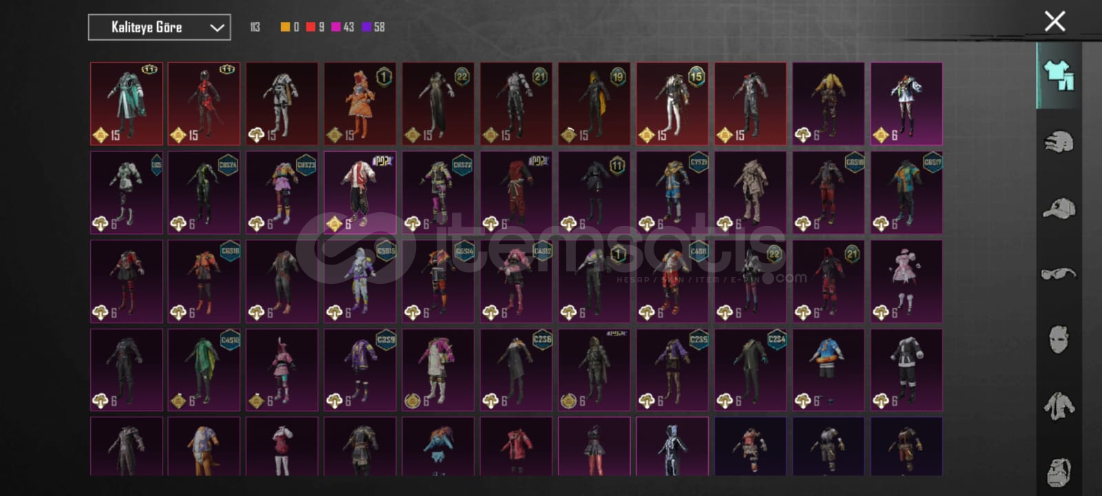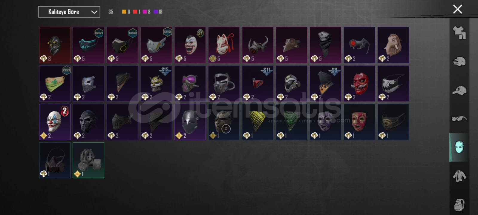 İsim yenileme karti mevcutturC8S23 sezon fatihiEndüstriyel cip Uaz svy 1S2 maskesi vardır.Dikenli şafak m16a4 svy 3 MAXEjder katili yadigari pala svy 2Yükselen ejderha MG3 svy 1Steampunk thomson svy 1Kasvetli av pompali svy 1 Küçük midilli m762 svy 3Endüstriyel jip svy 1Geriye kalan her şey fotoğraflarda mevcuttur.