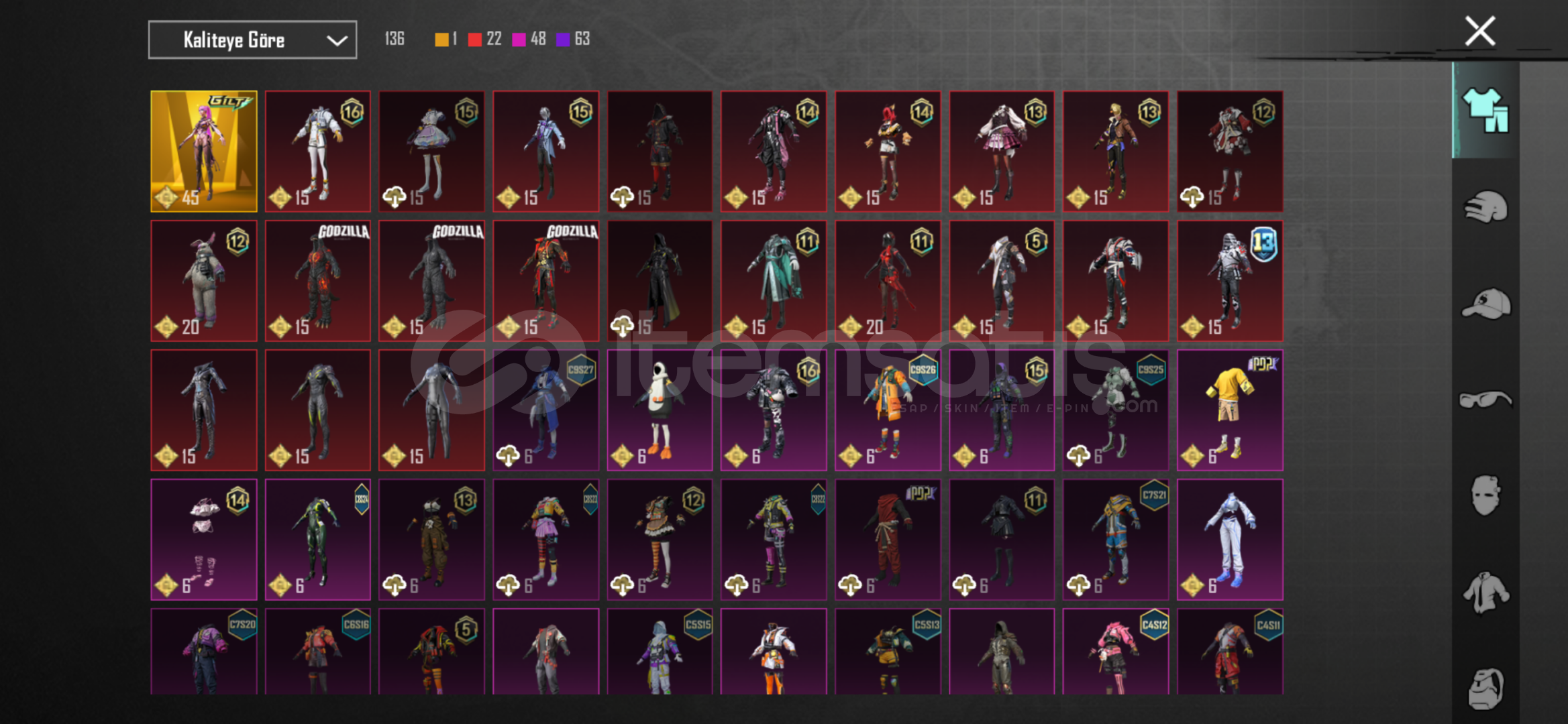 Hesapta işgalci ve karakopek balığı seti var godzilla setleri mevcut içinde 682 uc var 1 adet nihai set vardır bir çok yükseltilebilir silah mevcut onun dısındaki detaylara fotolardan bakabilirsiniz alıcısına şimdiden hayırlı olsun