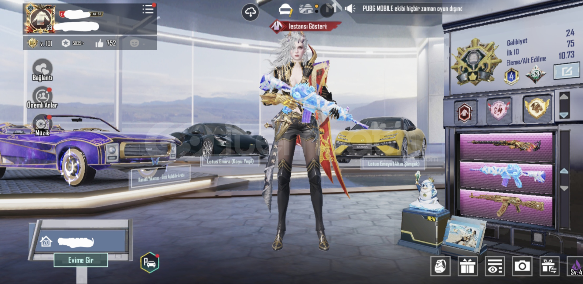 Oyunu bıraktım için satılık 69 destansı, dravion xsuit 3 seviye , awm ölüm duyurusu, lotus arabalar koyu yeşil sarı emeya ,kanatlı yakamoz araba , 28 yükseltilebilir silah , 9 yükseltilebilir araba, 30 destansı emoji, carlo sara emilia karakterler açık , 2 aylık daha prime plus üyeliği var, 1 senedir kendi büyüttüğüm hesabım