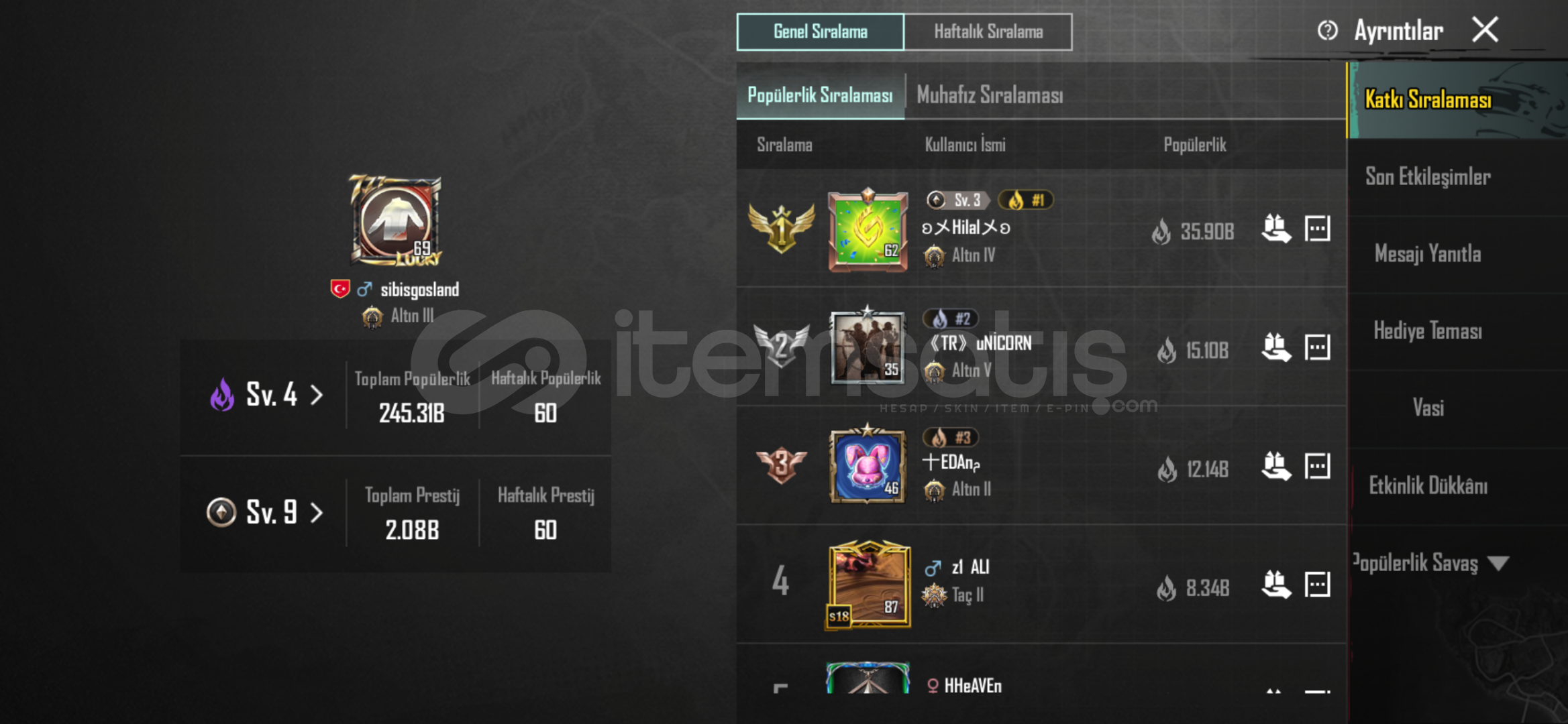 Hesabım 69 Seviyedir7 Yıllık HesaptırSezon 4 te açılmıştırShiba lnu yoldaş vardır7 adet yükseltilebilir silah mevcutturCarlo,Sara,Anna karakterleri açılmıştırçoğu hesapta olmayan nadir ögeler vardırSeviye 45 Elit Koleksiyoncu hesabıdırçeşitli araba ve motor kaplamaları vardırToplam 15 Ünvan vardırdetaylı bilgi için mesaj atabilirsini...