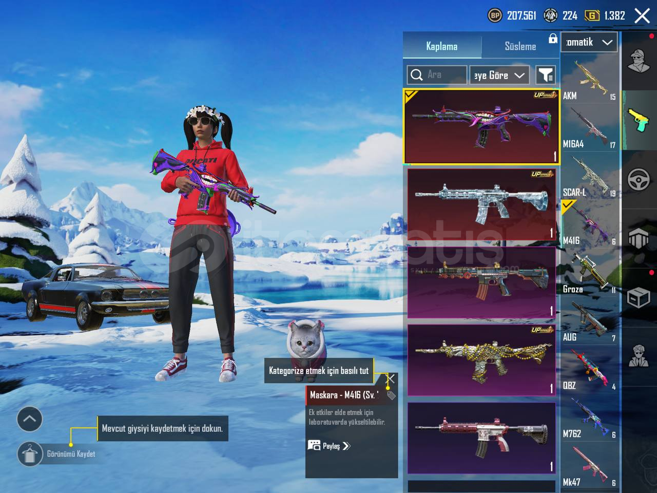 BAŞLIKTA DA GÖRDÜĞÜNÜZ ŞEKİLDE +7 BUZ, MASKARA VE +6 GÜMÜŞ GURU M416'LI HESABIMI SATIYORUM. HESABIN BÜTÜN BAĞLARI SAĞLAM VE HEPSİ DEĞİŞTİRİLEBİLİRDİR !MİDİLLİ M762 +4 (FULL)ALTIN PENÇE P90 +4 (FULL)KUMLAR KRALLIĞI AKM +4RUHBİÇEN UMP45 +2DENİZLERİN EVRİMİ UMP +3VB. BİR ÇOK NADİR VE YÜKSELTİLM&#...