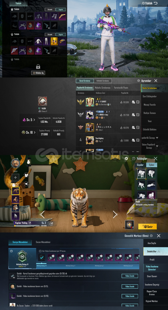 Merhaba hesabım ;Video linki:https://streamable.com/johw426 yıllık148 destansı7 nihai56 yükseltilebilirİkili saç8065 başarı puanıMüfettiş onbaşı rütbesi78 oyuncu seviyesi64 evo seviyesiRp açık ve 100Fatih çerçevesiDikenli kask,bugatti spor araba ve 3 adet araba,firavun 3 seviye,4 adet m416 7 seviye,2 adet destansı tava,4 adet yoldaş,ayı,leopar,kartal,köpek,maskara çan...
