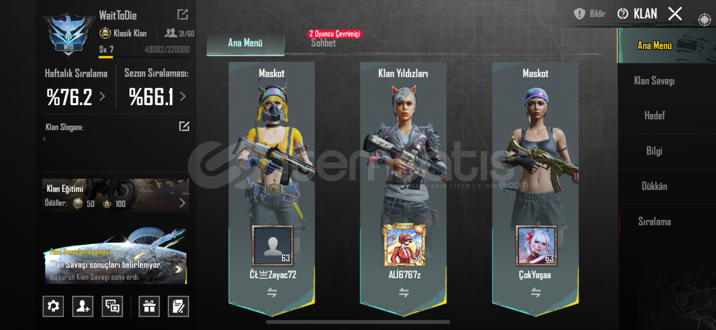 7 SEVİYE KLAN ACİL SATILIK ANINDA DEVİR İSİM DEĞİŞTİRME AKTİFTİR
