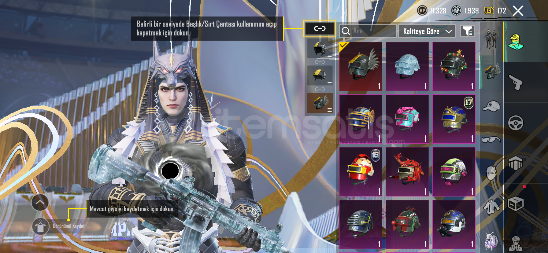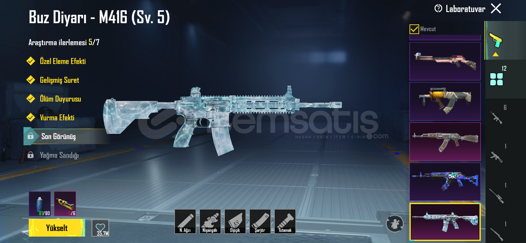 Kriyojenik tayf seti,2.seviye x-suit,5.seviye m416,midilli m762,planör setleri,paraşüt,timsah buggy,29.seviye ev,yoldaş olarak aslan,kaplan,köpek var.Kriyojenik tayf setini alabilmek için sadece 10000 lira harcama yapıyor e sporcular.Nakit ihtiyacımdan dolayı satıyorum,alan hayrını görsün.