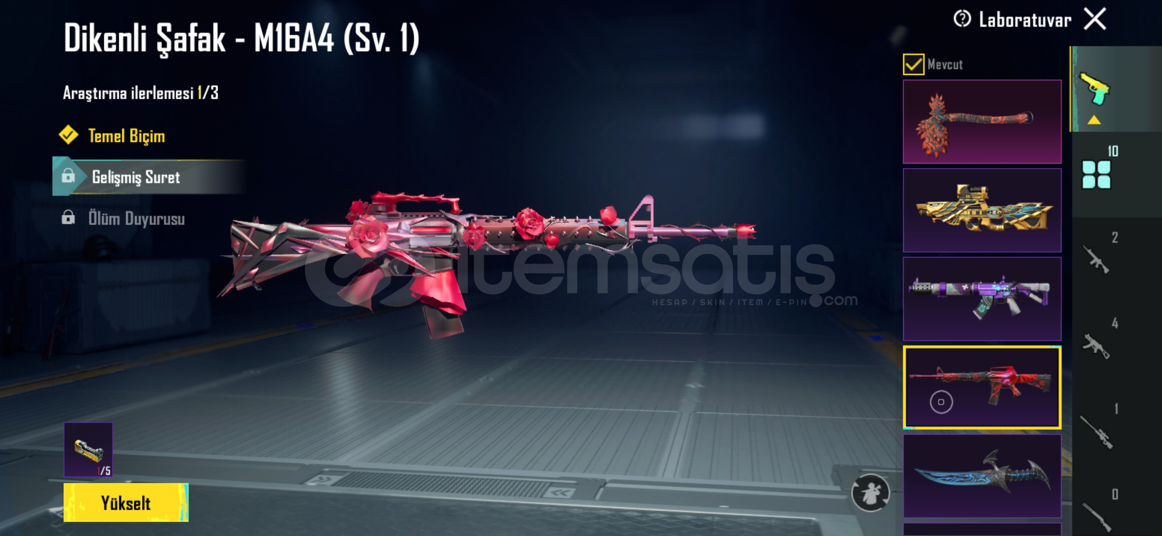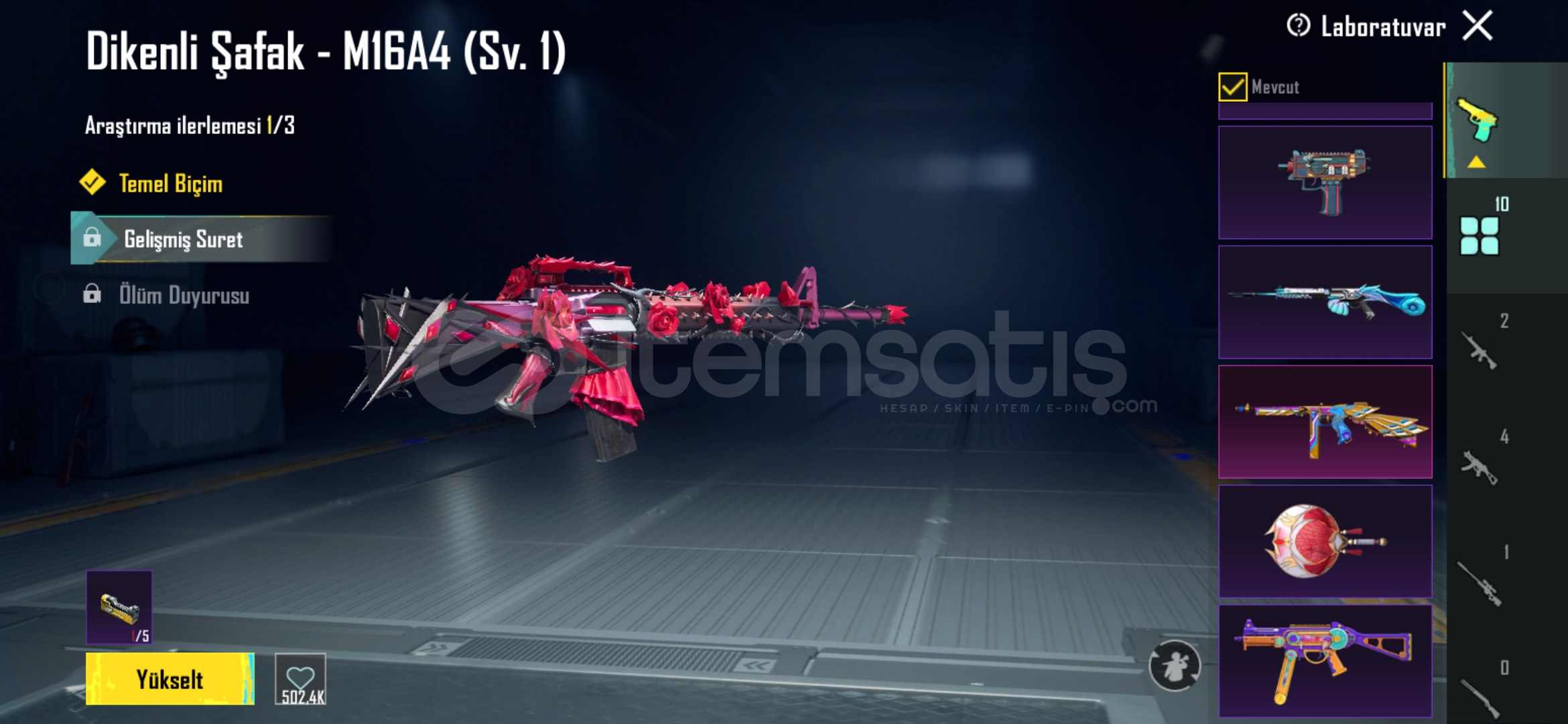 1. Hesapta 10 tane geliştirelebilir silah vardır