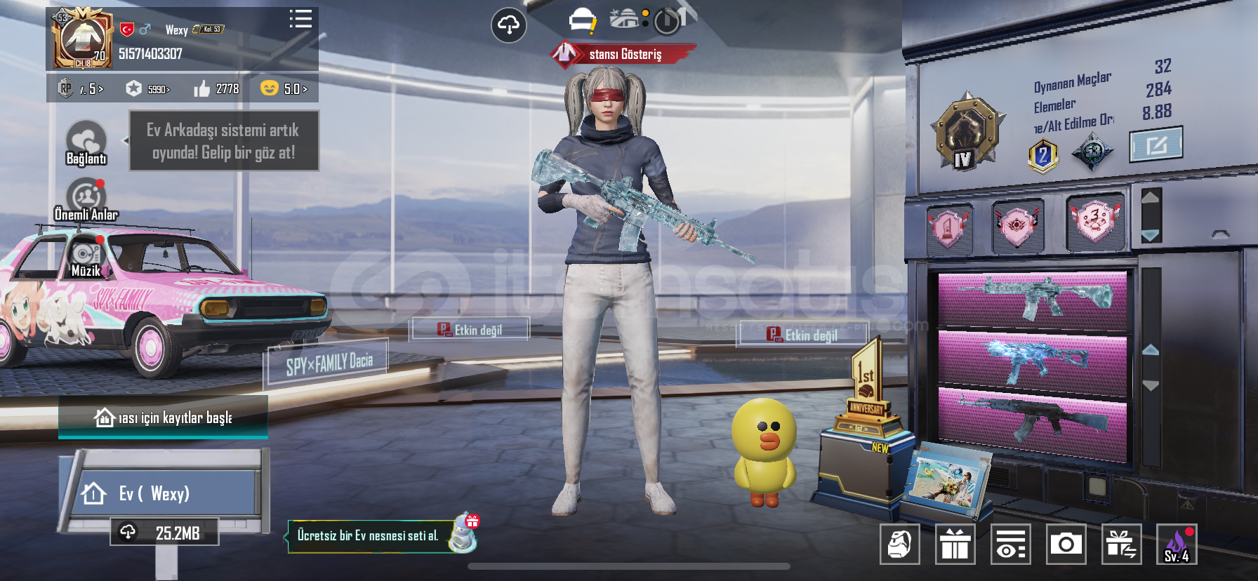 72 Destansı Vardır4 x suit Vardır 2 Saçda Vardır Komutan Seti Crew Ananas Seti ve daha fazla degerli setler Vardır 24 Yüksektilebilir Silah Vardır Buz m416 6 Buz ump 6 Buz akm 2 Seviyedir 170 uc ve isim kartı vardır Daha Fazla Bilgi Dm