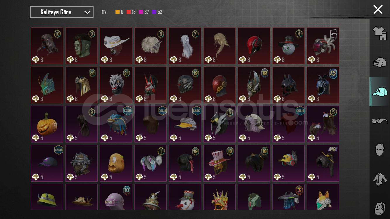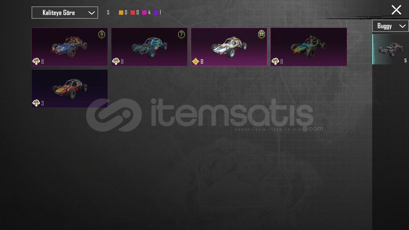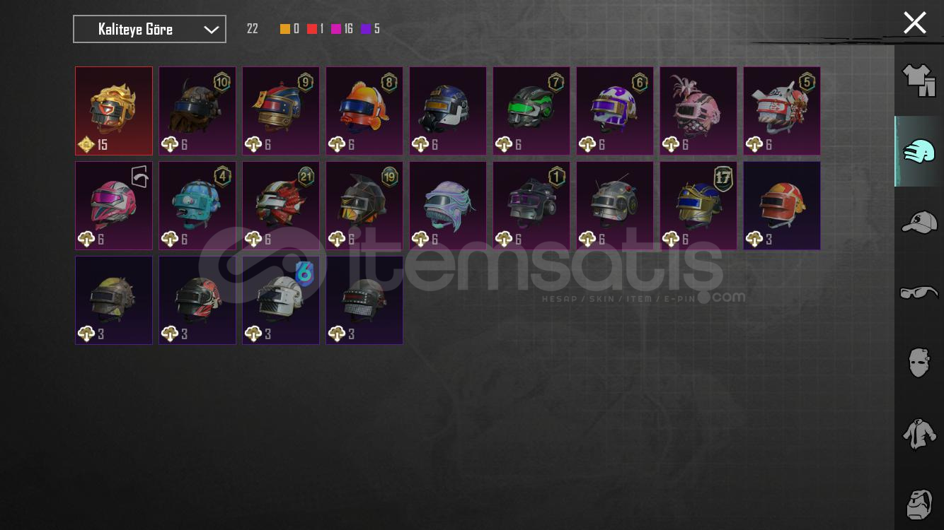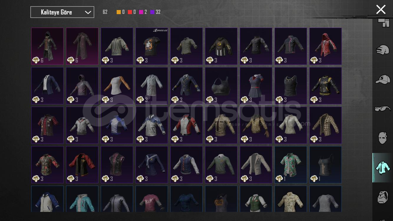 SilahlarKod kırıcı AKM 2 svyMidilli m762 2svyGöksel işaret uzi 4 svy8 bitlik patlama ump 4 svyArındırıcı amr 1 svyKalan 8 i RP silahları5 meteryal 2 destansı amblem varXsuit yok