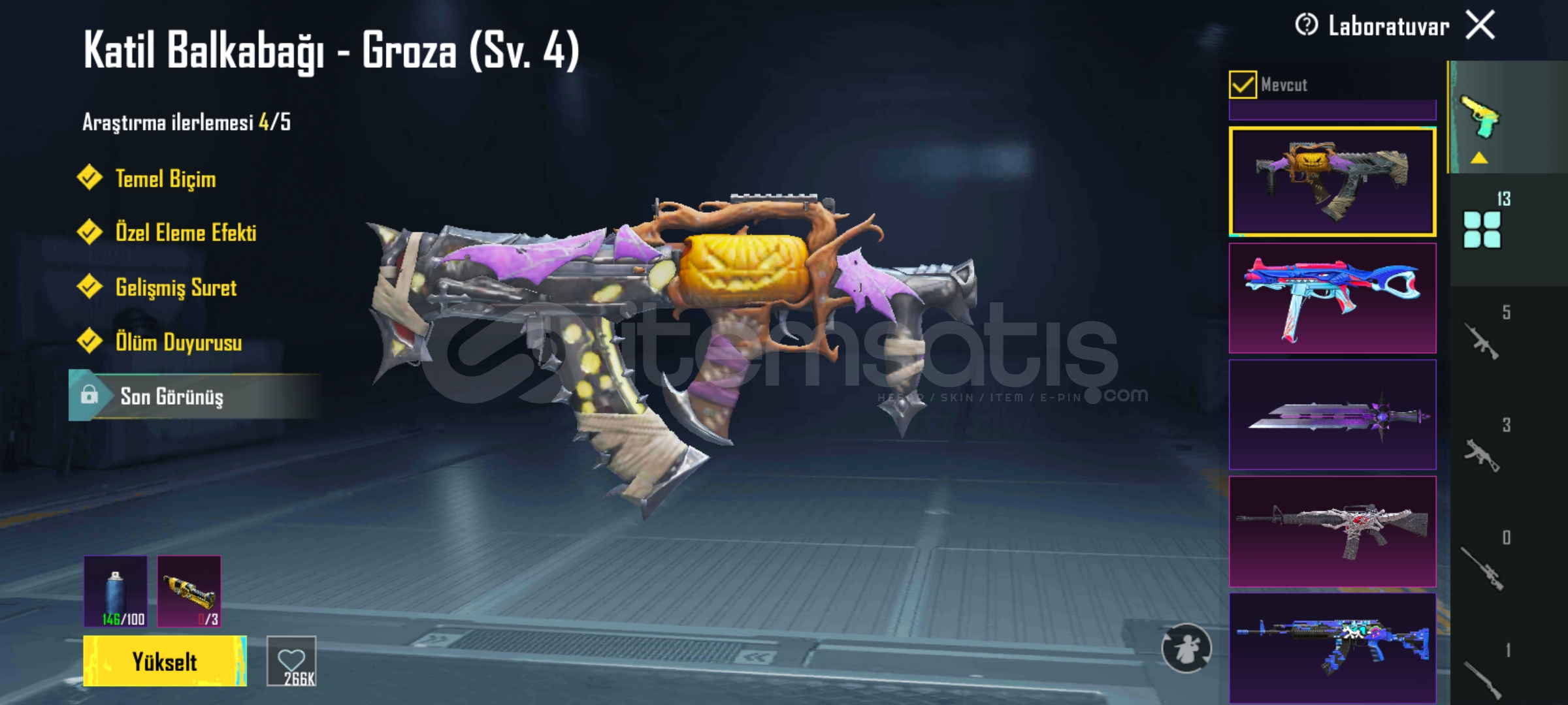 İskelet Çekirdek M16 2 seviye, Katil Balkabağı Groza 4 seviye, UMP, DPS, Thompson 3 seviye, Küçük Midilli M762 4 seviye