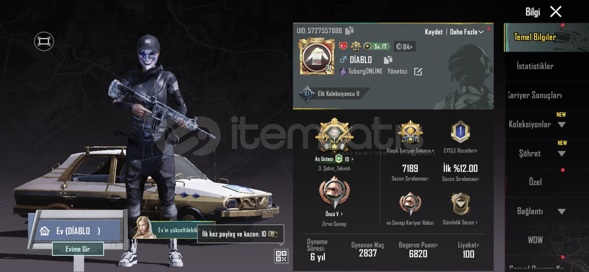 71seviye 20 bin TL yatırılmış hesap İNDİRİM VAR