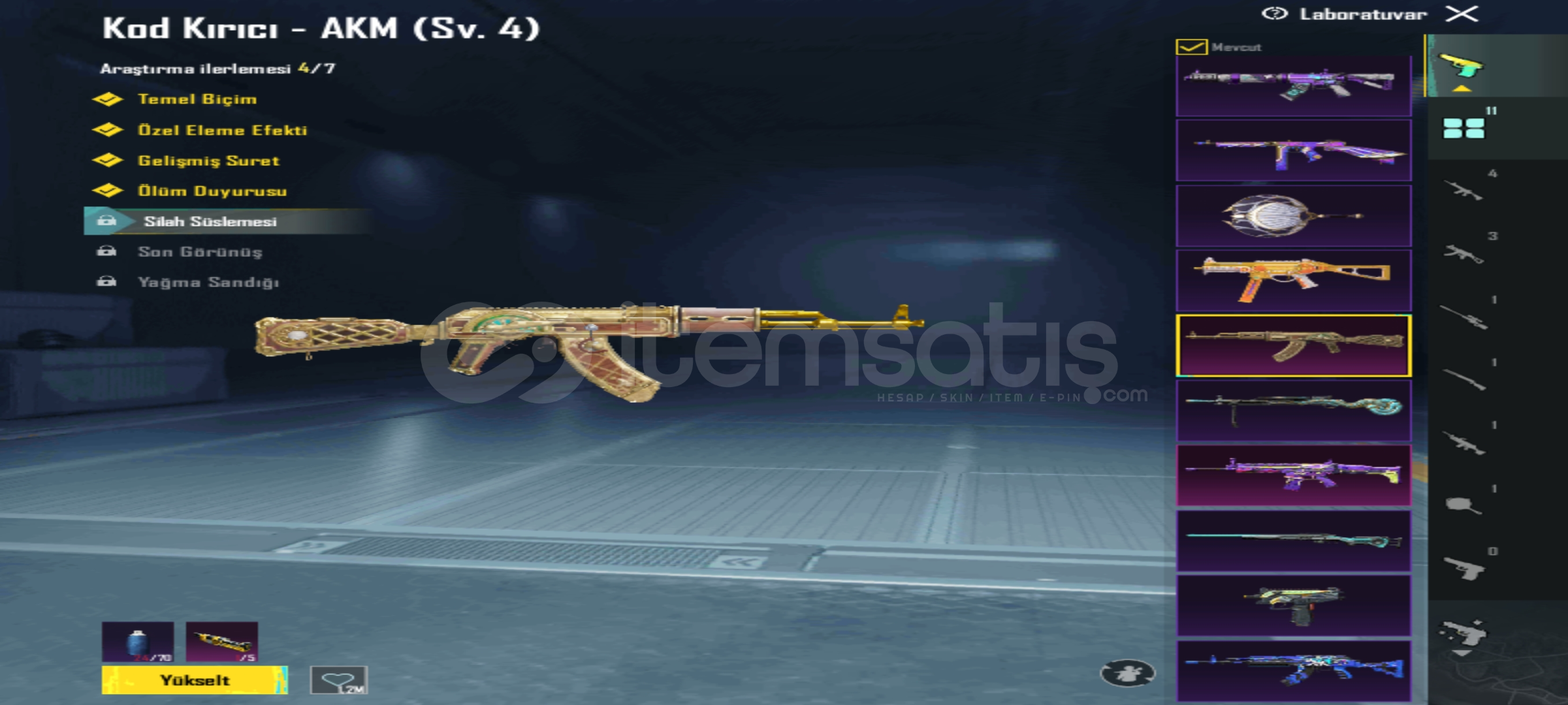 72 Lvl 38 Destansı 11 Yükseltilebilir Silah2'si ölüm duyuruluKod kırıcı AKM 4 (Sv.)M762 Küçük Midilli 4 (Sv.)Hesapta 20Bin+ popülerlik mevcuttur2 Adet İd kartı isim değişim kartı mevcutturHesapta 1.5 materyal ve1000 uce vardır