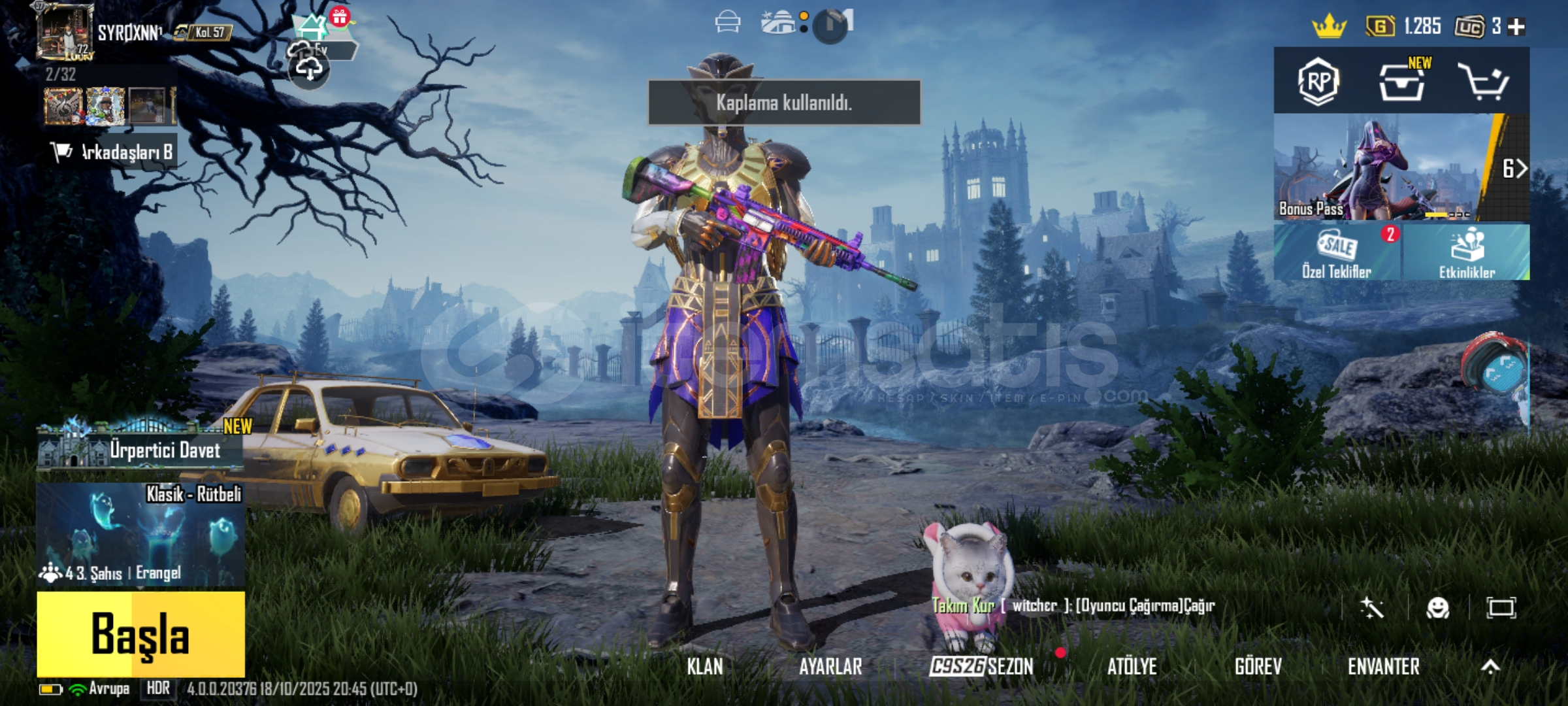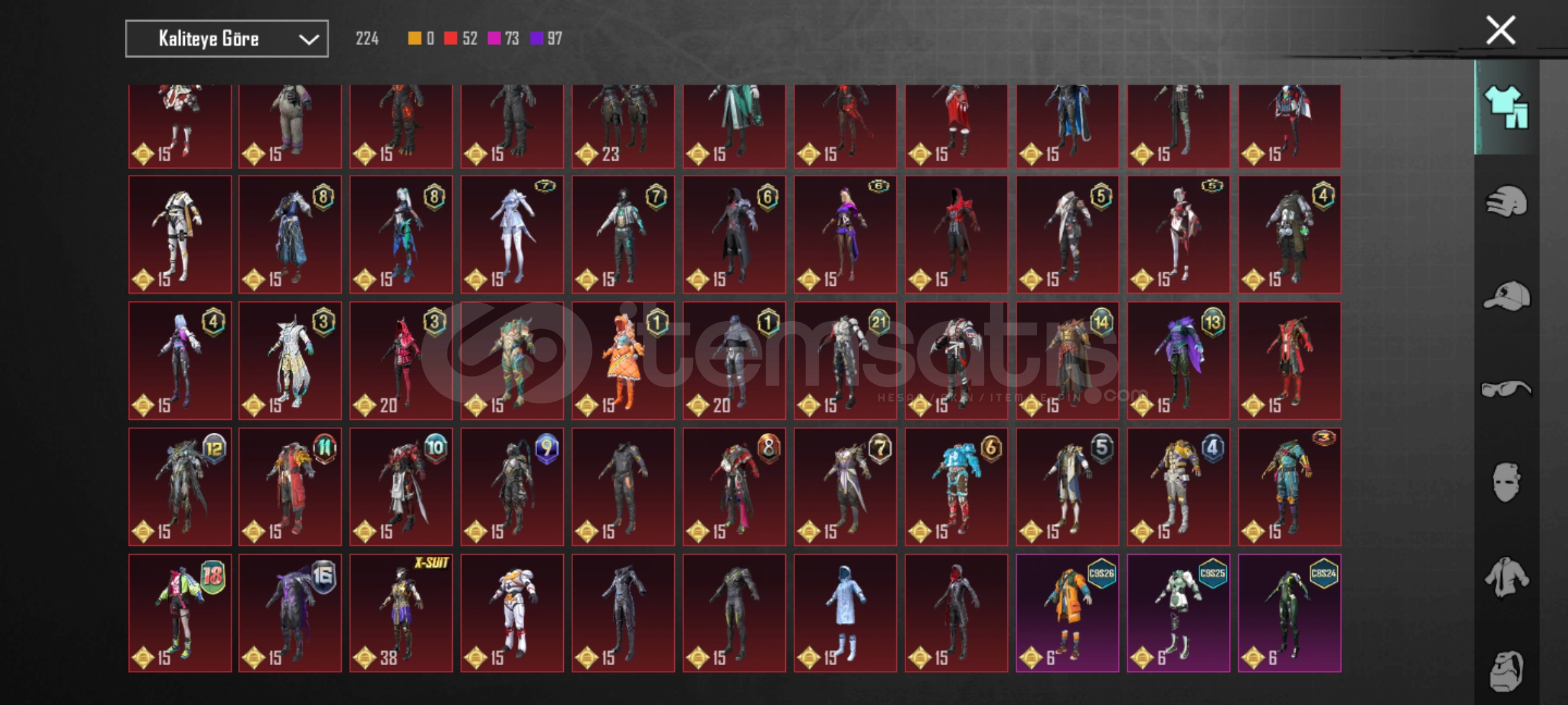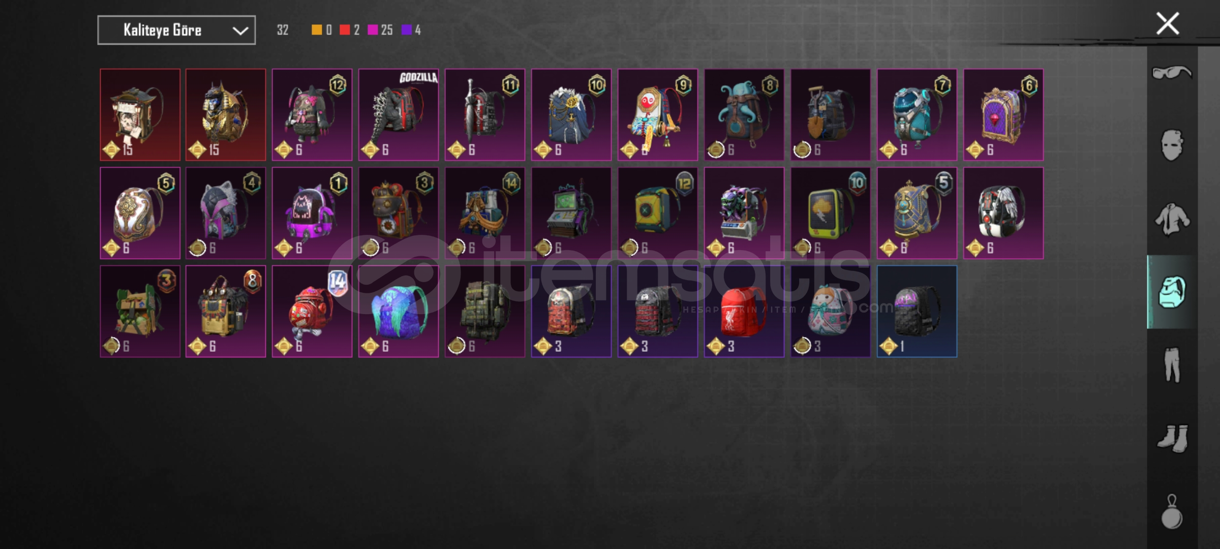 72 seviye destansı hesabı gösteriş firavunlu hesap2.seviye firavun1.seviye anukraBuz setiİşgalci setiSeri katil seti2x gozdilla seti çantasıCehennem habercisi setiFiravun çantasıFiravun paraşütüM4 maskara 4 seviyeM4 yakan kükreme 3 seviyeUzi 4 seviyeM762 4 seviyeYıl dönümü ump fullScarl l maskara 2 seviye3 x yoldaş hayalet,firavun kedisi,kediYükseltilebilir sedanTüm bağlar degiş...