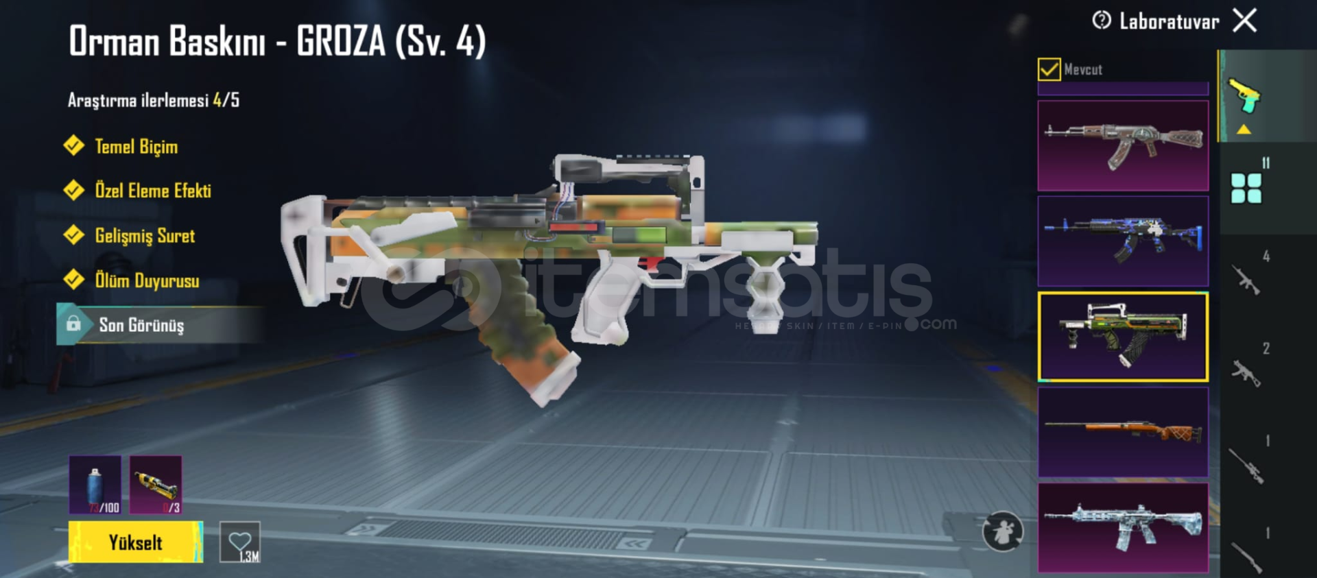Hesabımın içinde Buz M4 4. SeviyeOrman baskını groza 4.levelToplam 11 yükseltilebilir silah72.levelAkülü zırhDistopya kahramanı Yükseltilebilir arabaTimsah bugyAlanı üzmezzz