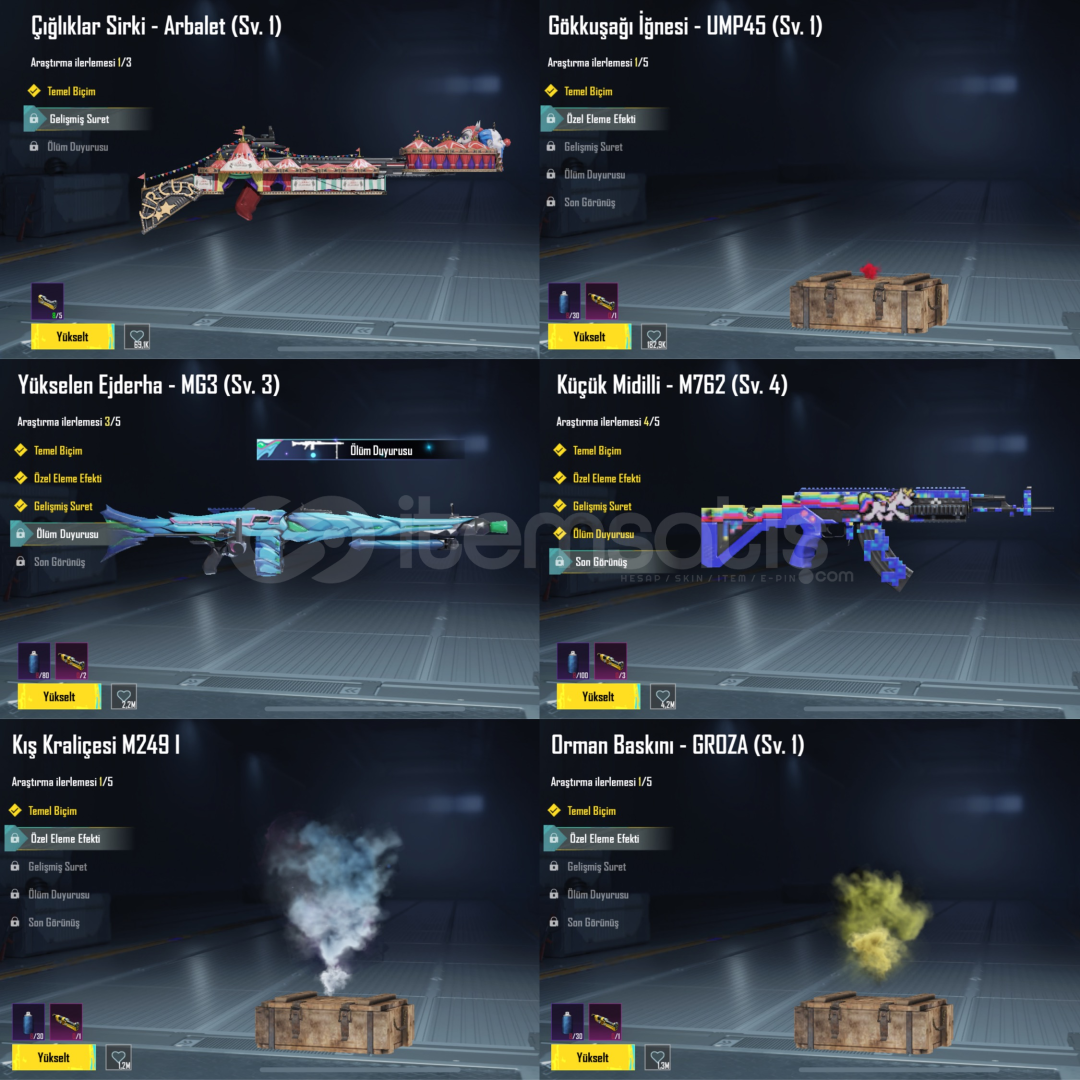 Ürün Hakkında Bilgiler⭐️⭐️[ 72.Seviye⭐️[47.Sv Koleksiyon⭐️[12 Adet Yükseltilebilir⭐️[ Çağlar Sirki Arbalet 1.Seviye⭐️[Yükselen Ejderha Mg3 3.Sebiye⭐️[Kış Kraliçesi M249 1.Seviye⭐️[Gökkuşağı İğnesi UMP45 1.Seviye⭐️[Küçük Midilli M762 4.Seviye⭐️[Orman Baskı...