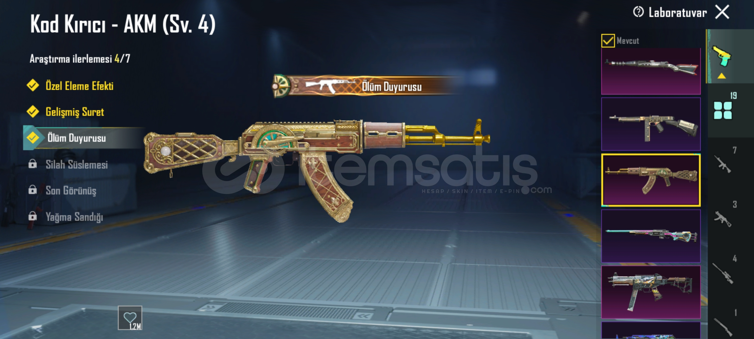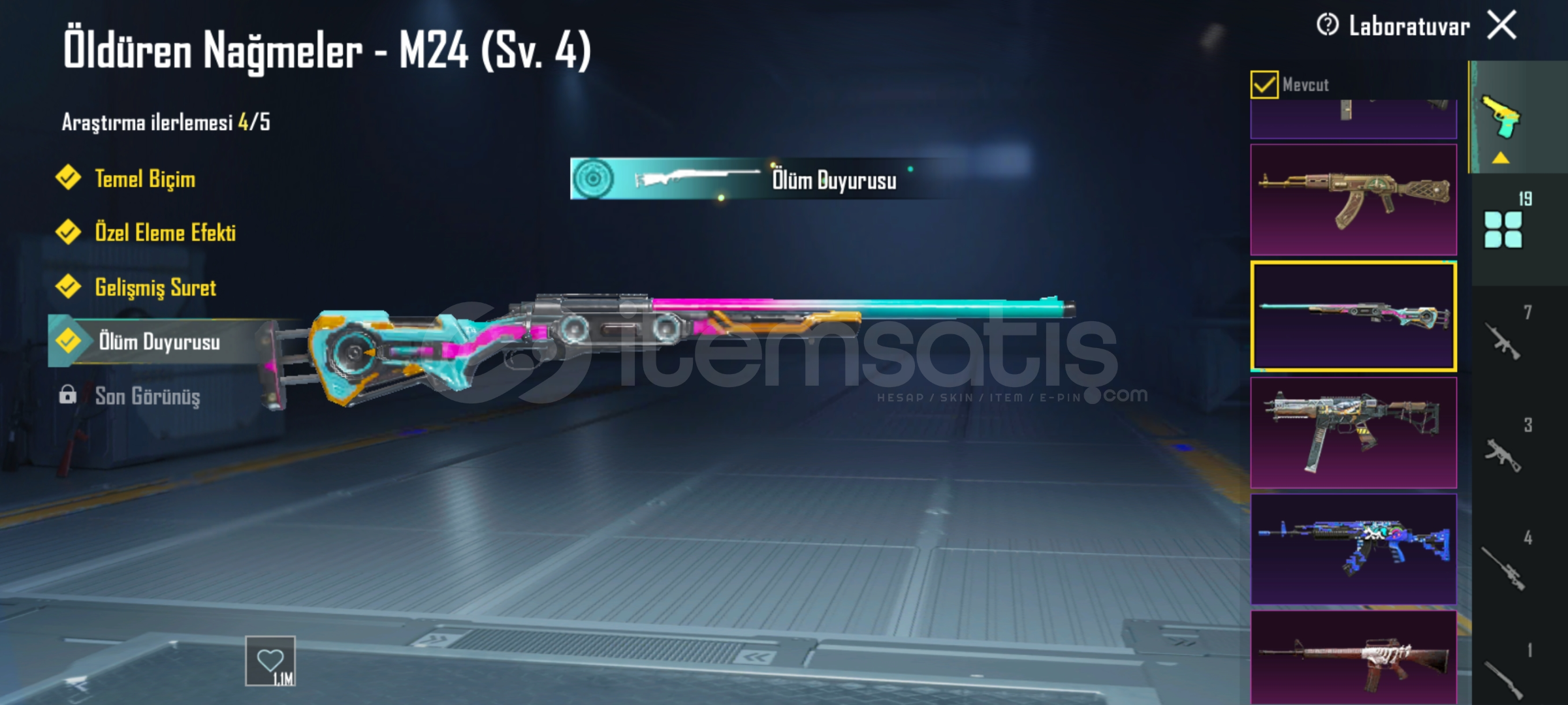 Hesapta 19 adet yukseltilebilir silah deseni bulunuyor