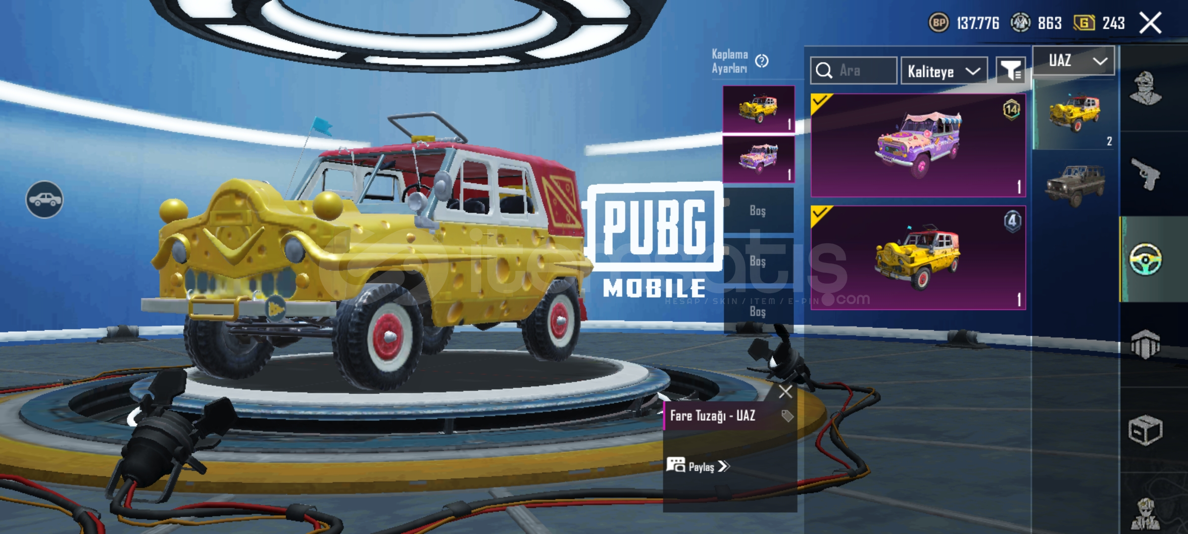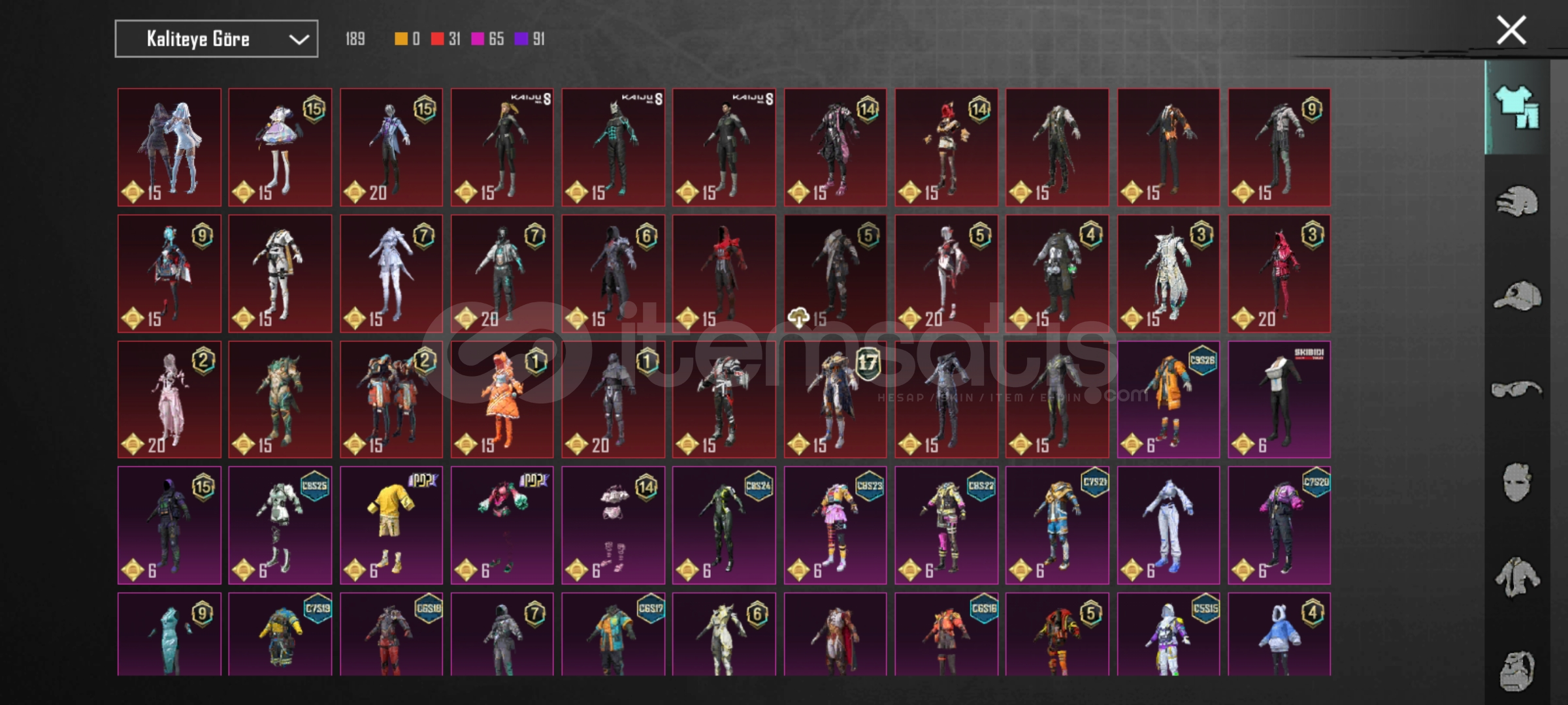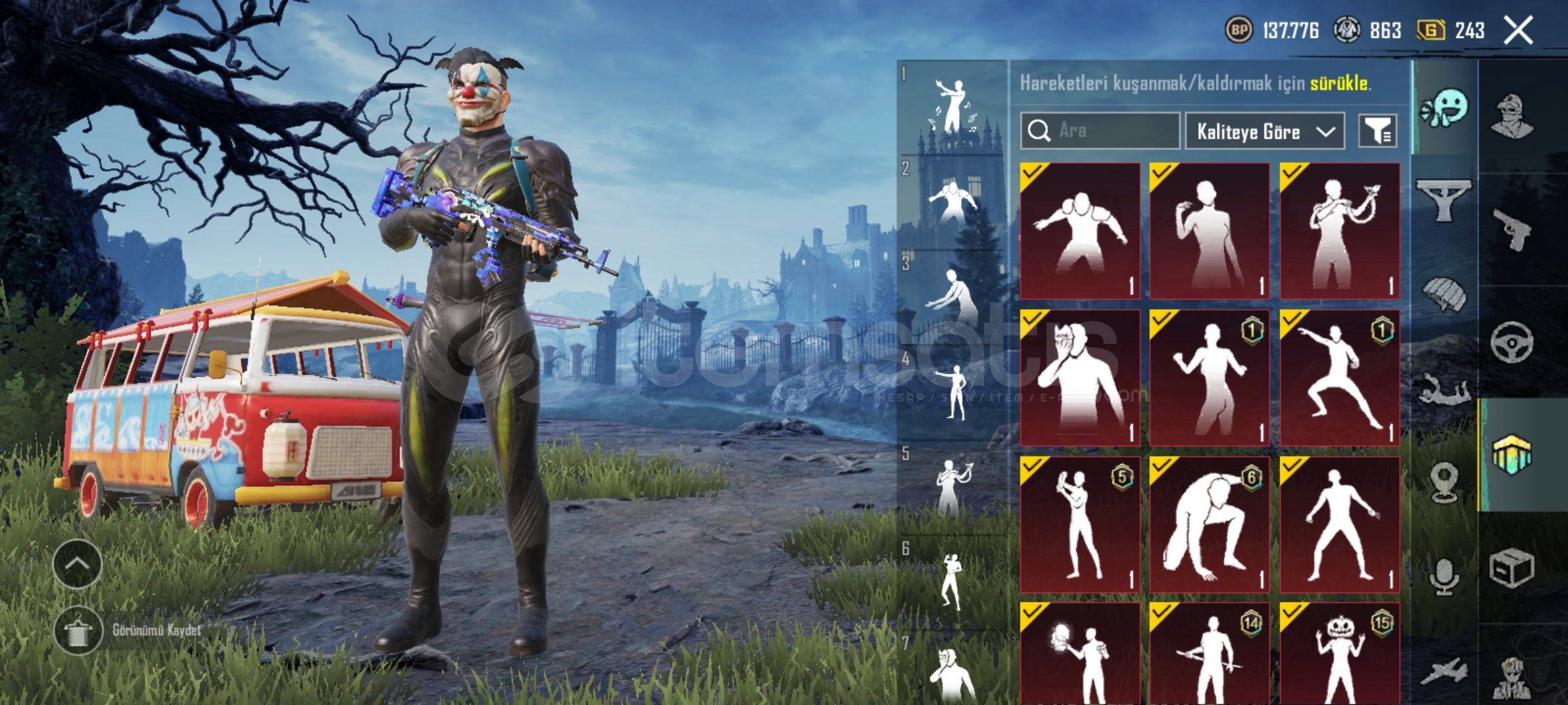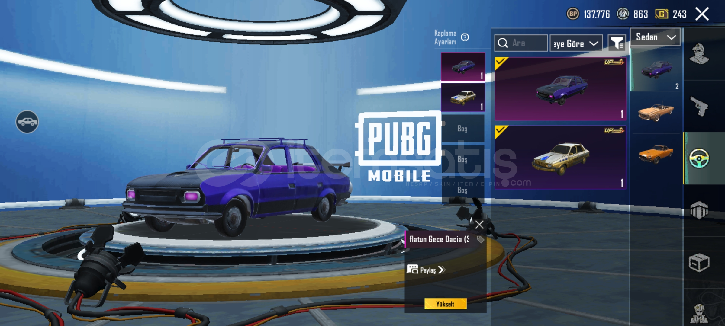 27 tane ünvan vardır. Destansı gösteriş ünvanı alınmıştır. Hesap kendime aittir. 7 yıllık emek hesabıdır bir süre oyun bırakıldığı için x suit mevcut değil RP açılmılştır. İşgalci seti vb güzel kıyafetler mevcuttur emojiler bol destansı. Spor araba yok ama çoğu arabada desen mevcut. Detaylı bilgi için dm g...