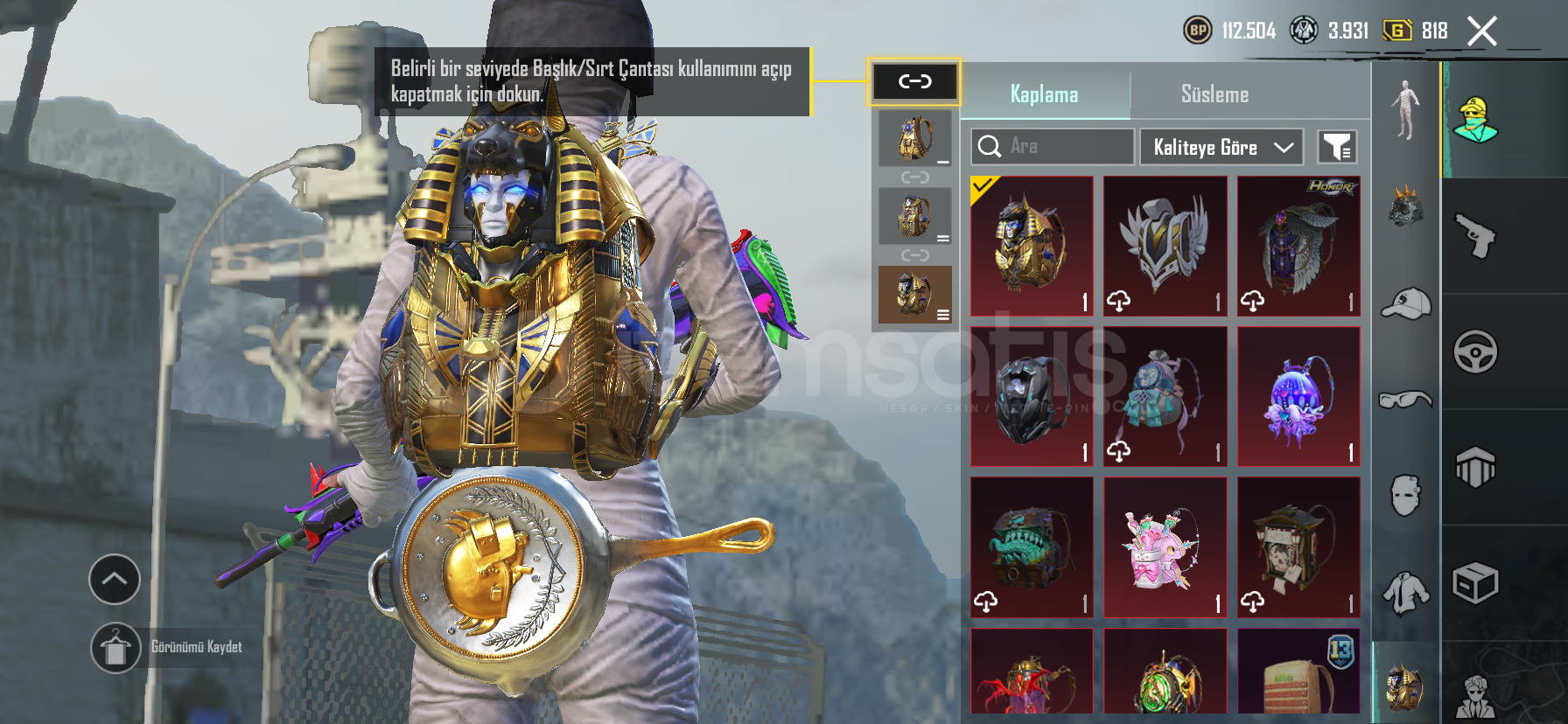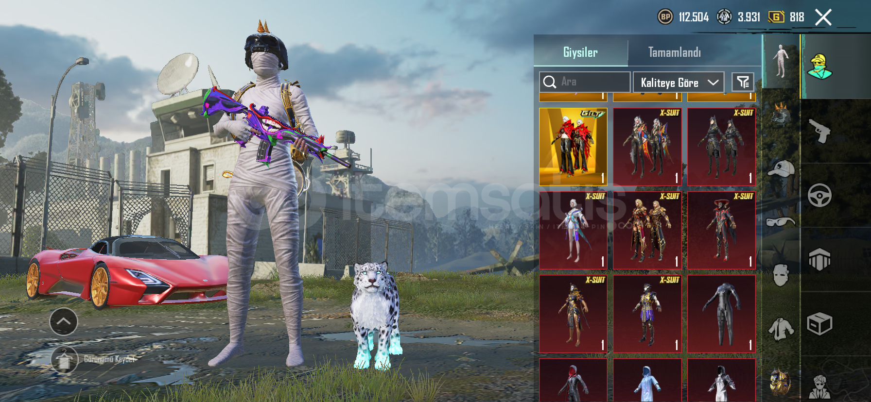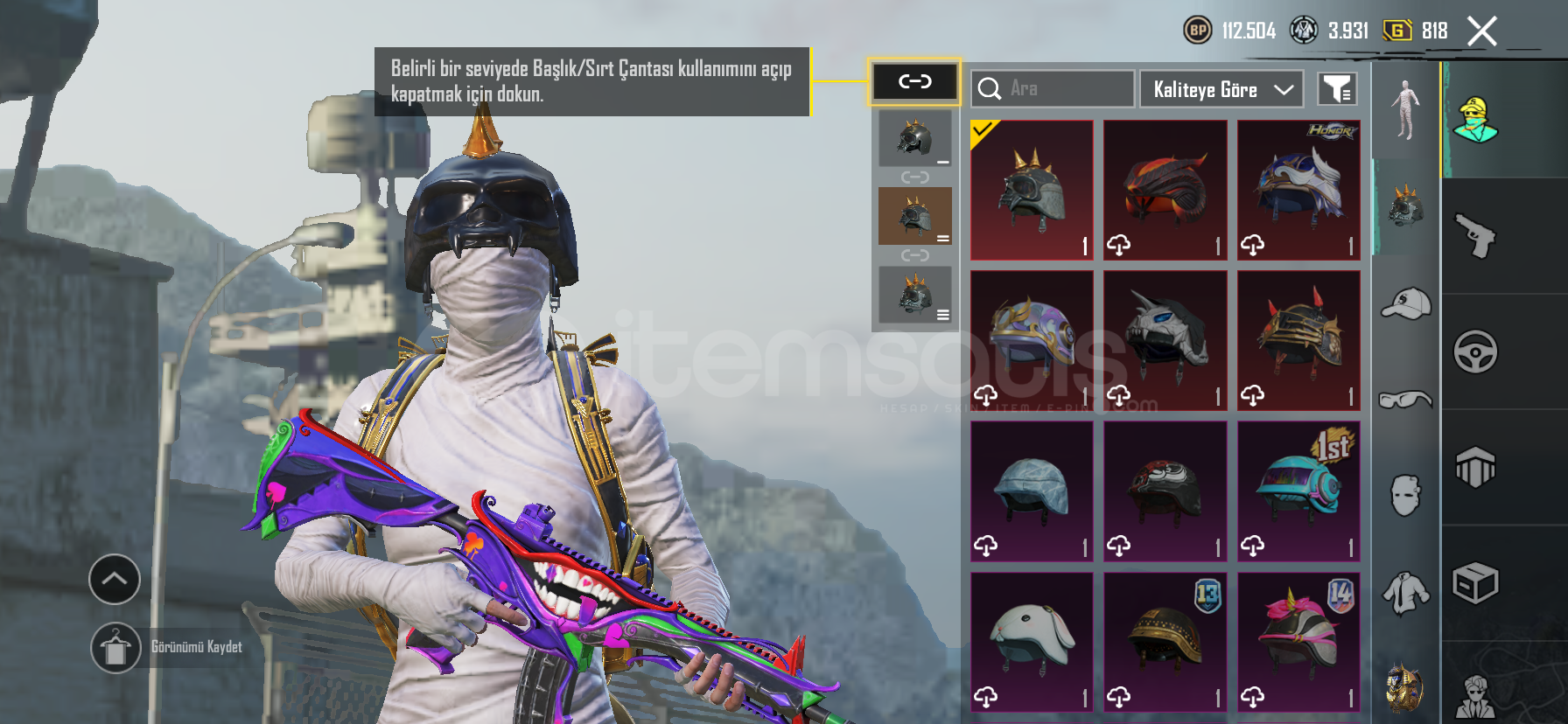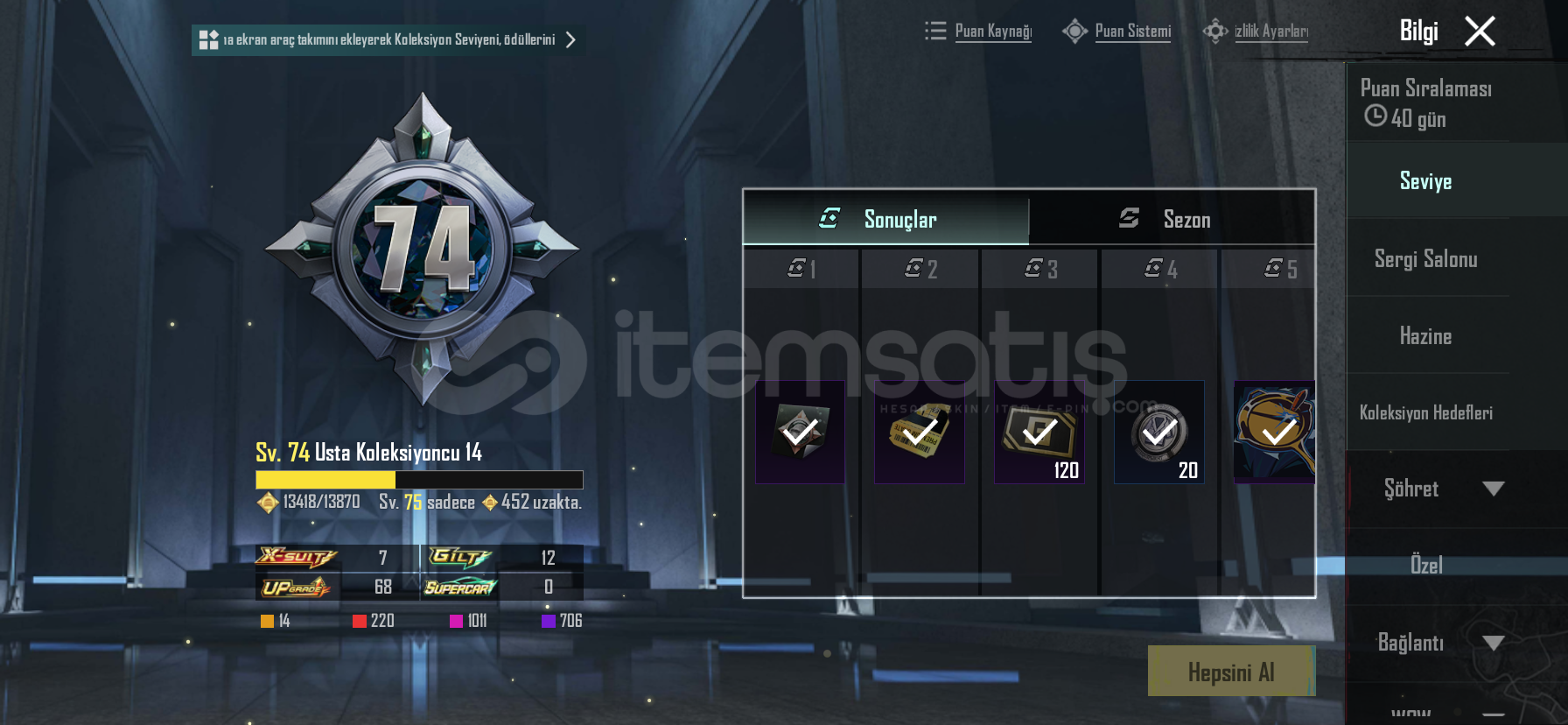 HESAP İÇİNDEKİ BAZI ÖNEMLİ ŞEYLER12 NİHAİ SET 2 NİHAİ BAŞLIK220 DESTANSI68 YÜKSELTİLEBİLİR SİLAH ÇOĞU ÖLÜM DUYURULU3 M4 max SAYAÇ AÇIK3 MUMYAXSUİT 7 TANE 1 TANESİ 5LVL 2 TANE 3 LVL DİYERLERİ 1-2LVLDİKENLİ KASK2. SEZON HESABI3 MATARYEL VAR2 YENİ NİHAİ PARÇACIĞI VARTEK BAĞ