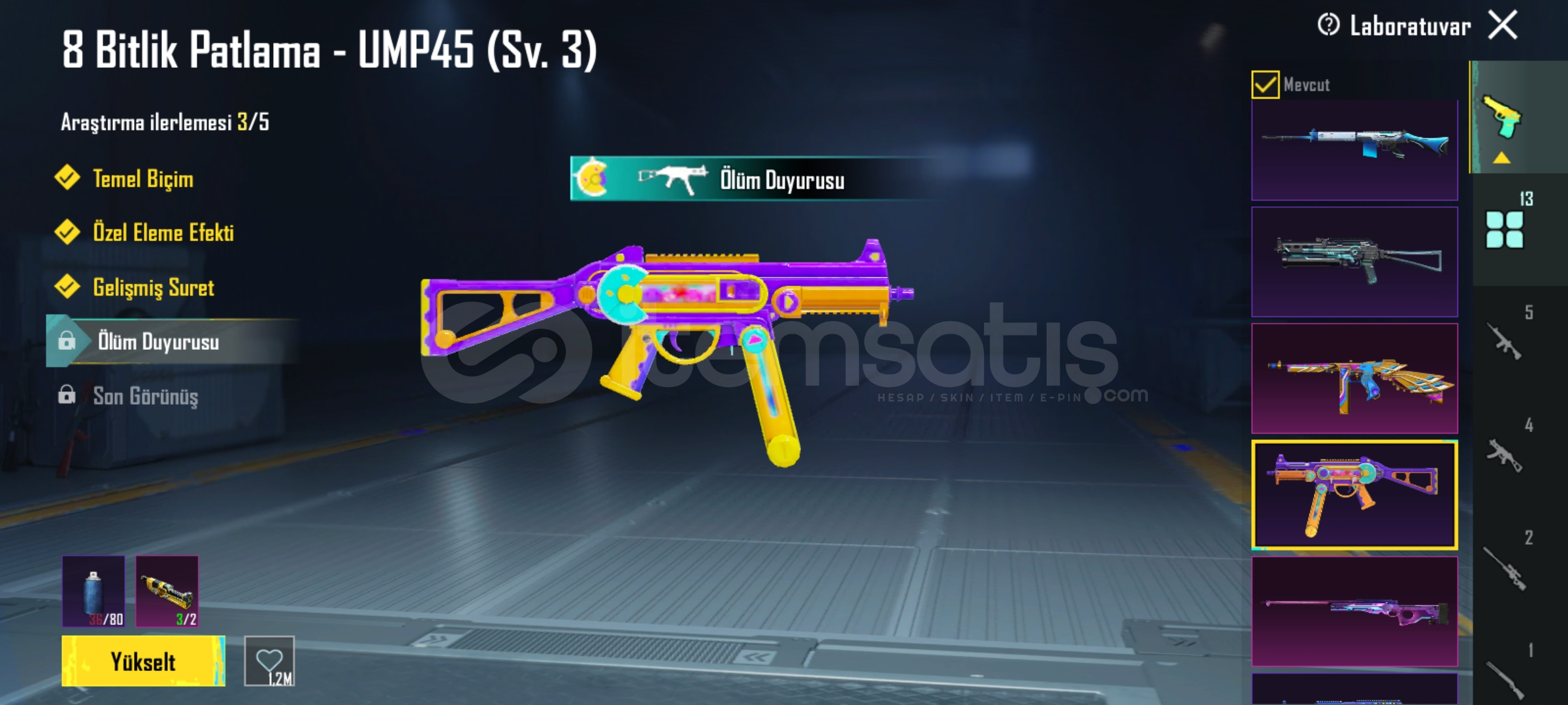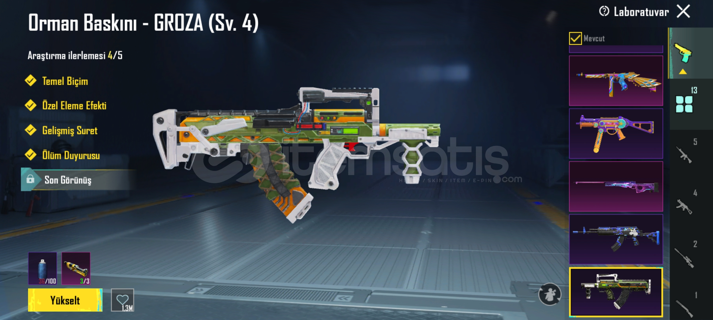 13 yükseltilebilir silah(3 ü ölüm duyrulu)