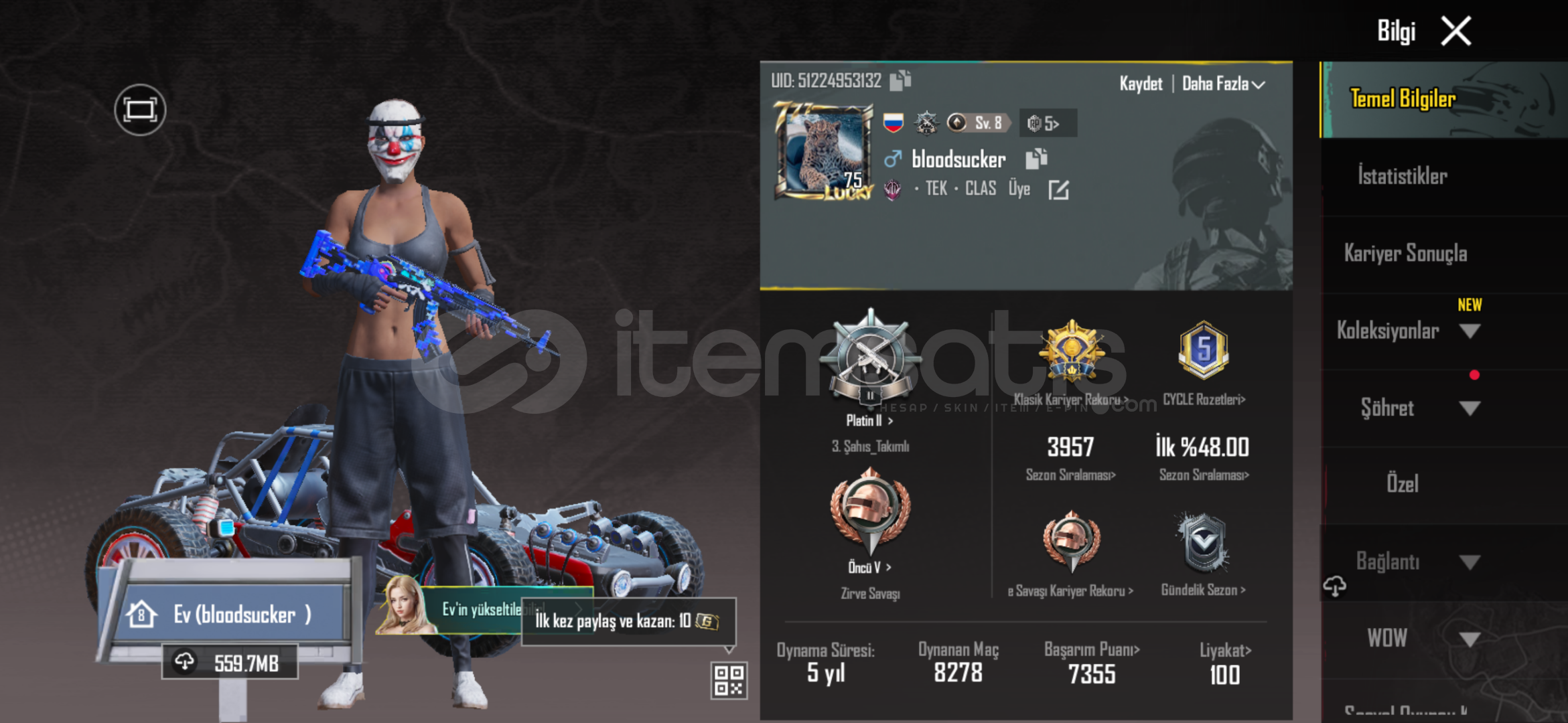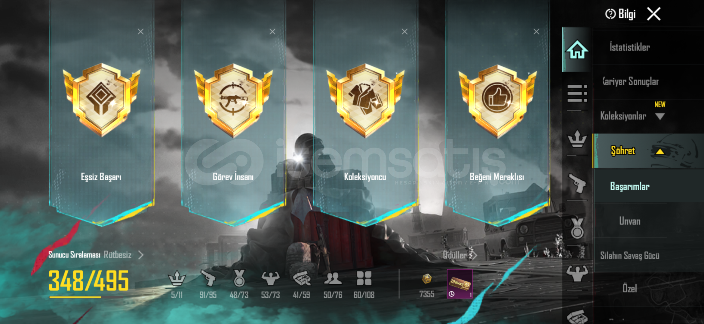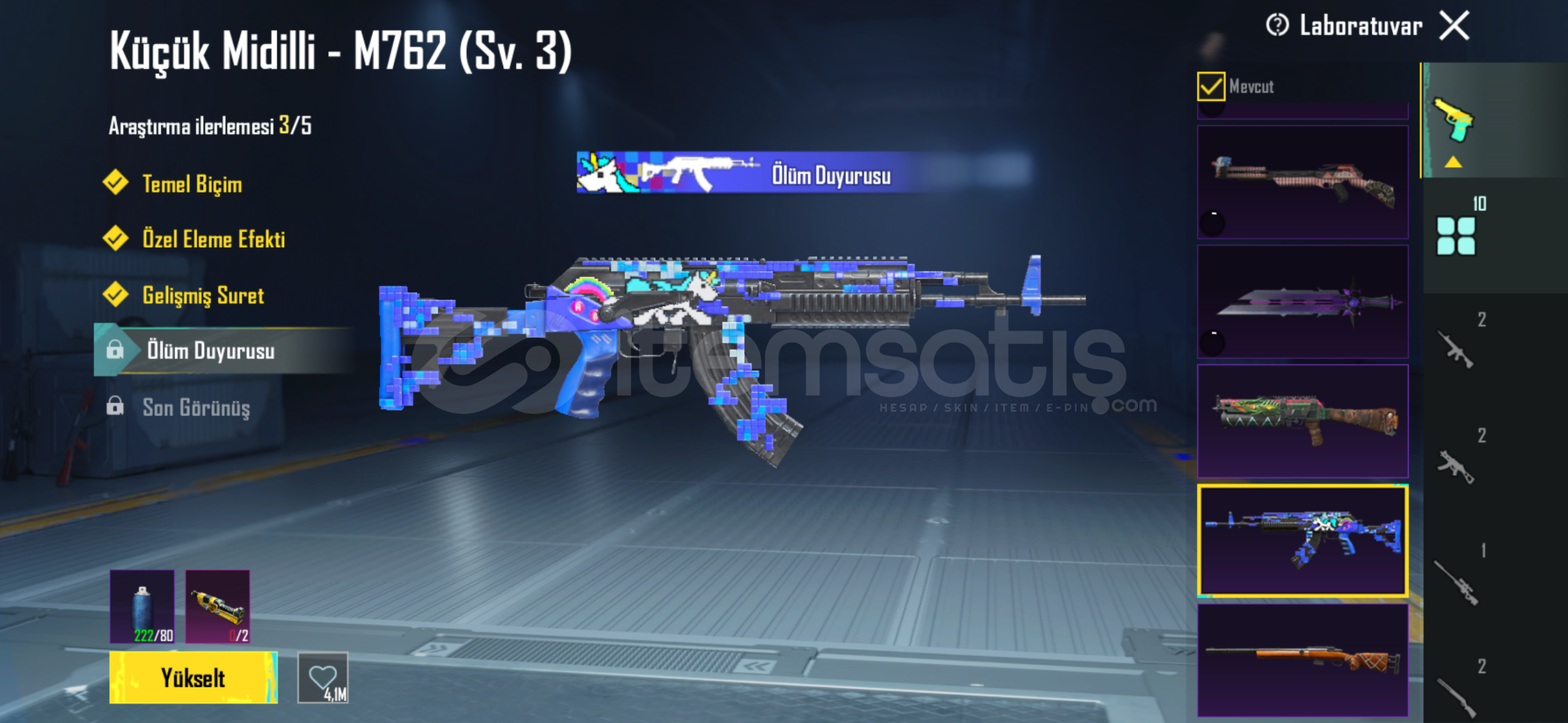 75 seviye destansı gösteriş nadi ögeli 3 özel yükseltilebilir silah 7355 başarım puani