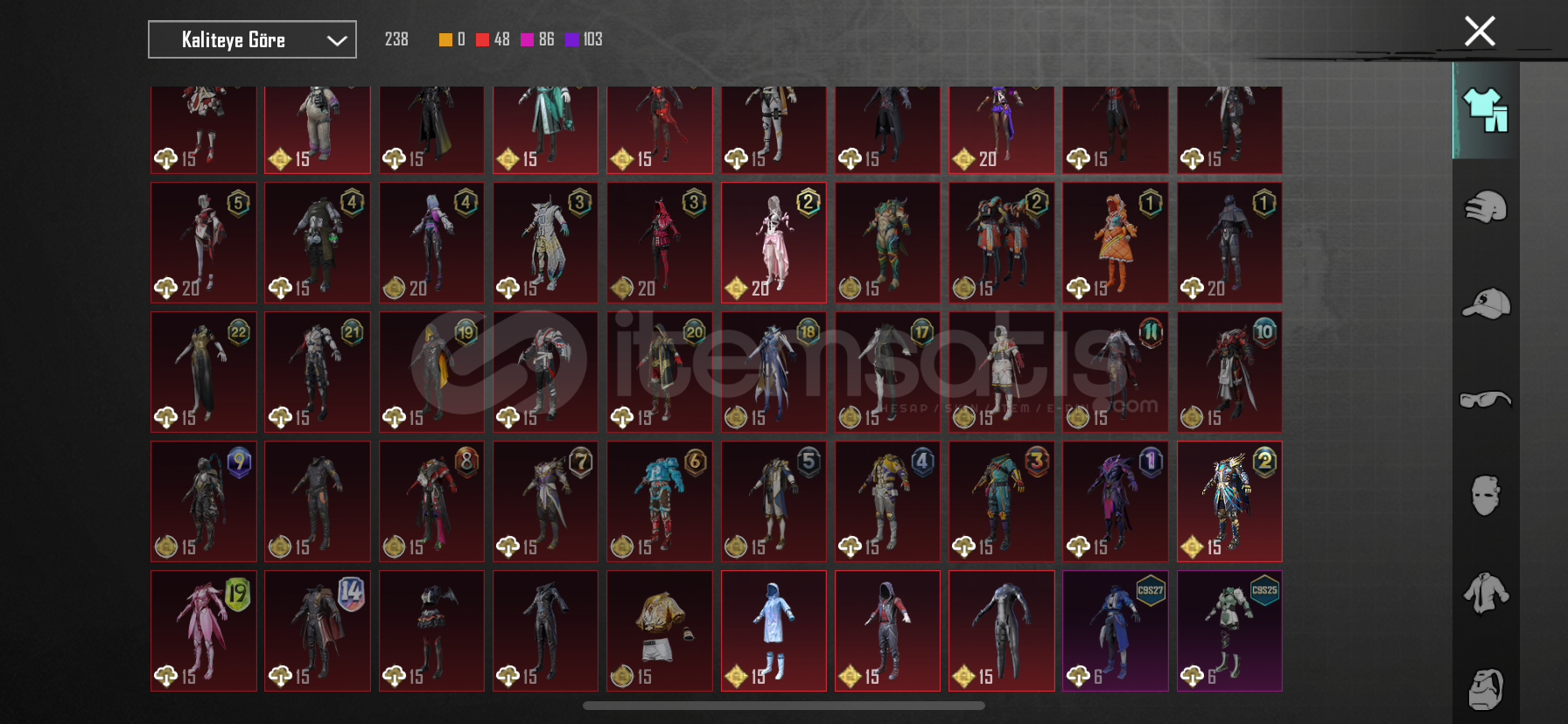 58 koleksiyon seviyesı 4 adet ölüm duyurulu komutan alt ust maske 80 destansılı hesap detaylar özelden konuşulur