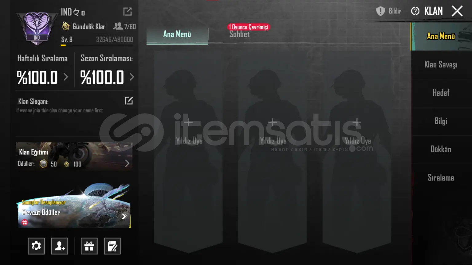 8 SEVİYE İSİM DEĞİŞTİRİLEBİLİR KLAN LÜTFEN CİDDİ ALICILAR YAZSIN ANINDA TESLİM !