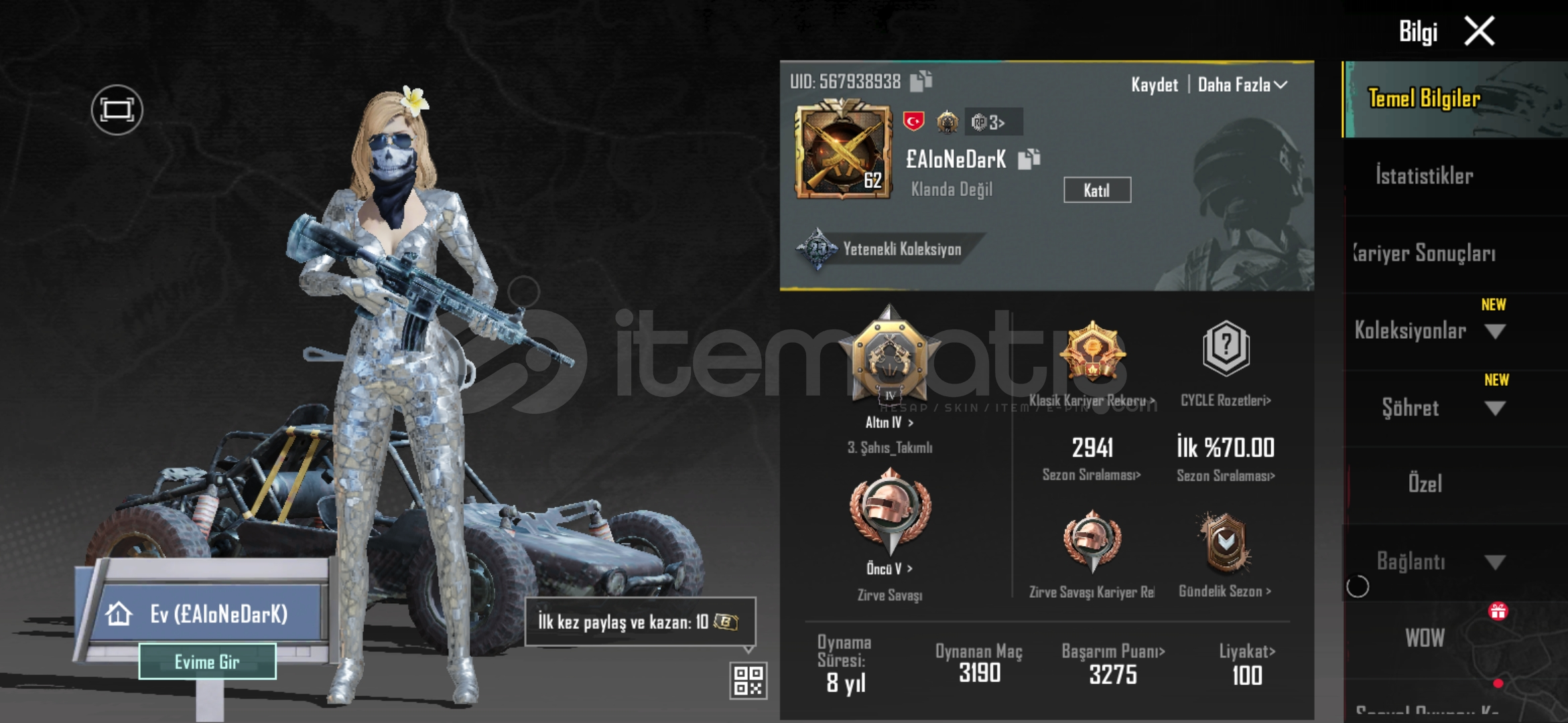 8 yıllık buzdiyarlı hesabım satılık e-posta ile birlikte devredilecek bilgi için yazabilirsiniz