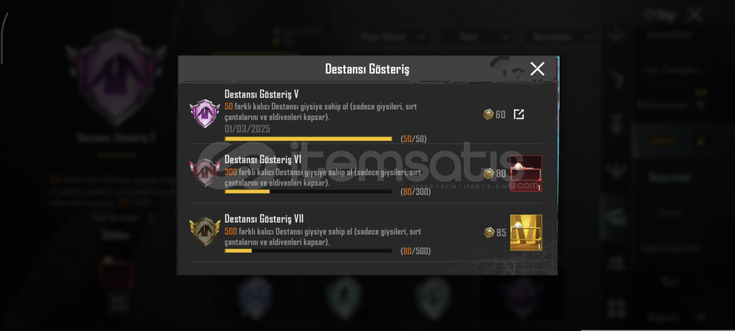 BUNLAR DIŞINDA HESAPTA 7 TANE MALZEME 6 TANE DESTANSI AMBLEM VARDIR HESAP DİREK ÜZERİNİZE DEVİR EDİLECEKTİR