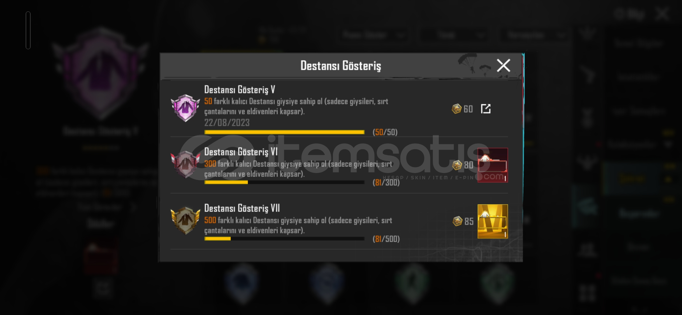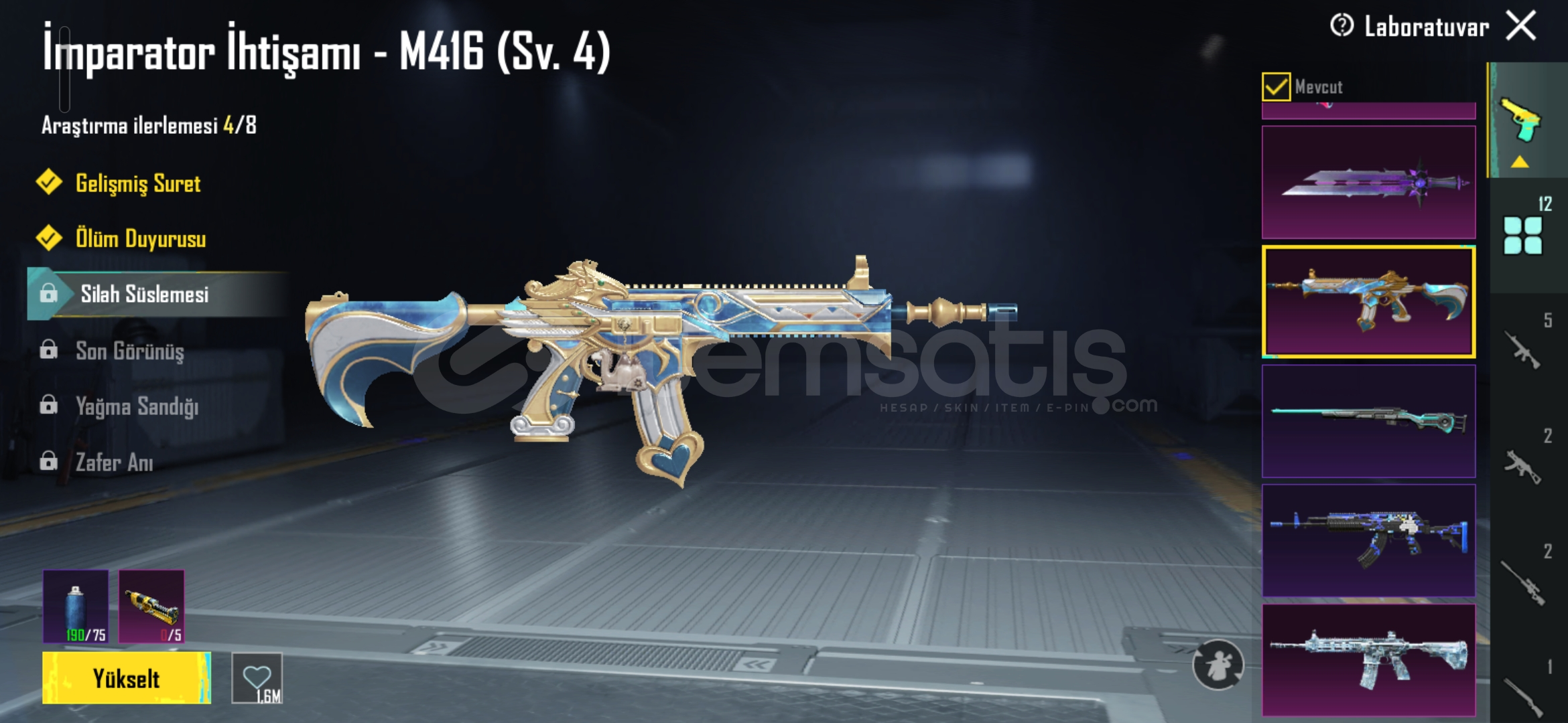 S2 yüzS2 saçBuz m4 5lvlİmparator m4 5 lvl81 destansı Mumya X suitVE DAHA NİCELERİ DETAYLI BİLGİ DM İNDİRİM YAPILIR