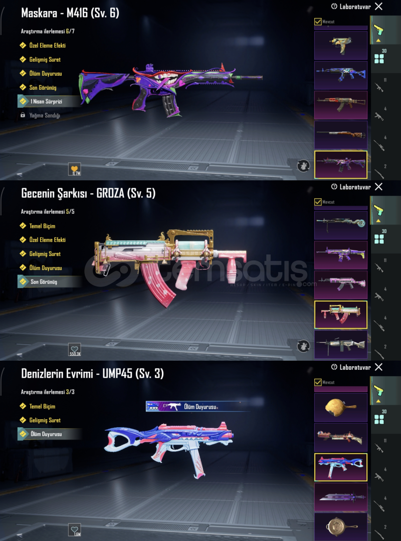 Hesap 83 destansidirİçinde 31 yükseltilebilir silah mevcuttur ;Yıl dönümü Ump 7 lvMaskara M4 6 lvYedi Denizler m24 4 lvKüçük midilli M7 4 lvGöksel işaret uzi 4 lvGecenin Şarkısı groza 5 lvEjder katili yadigari pala 3 lvDenizlerin evrimi Ump 3 lvLider panter DBS 3 lvPeri Cazibesi tava 3 lvŞirin kedi kar98 3 lvAlevli Godzilla baltası pala 3 lvMumya uzi 3 lvMumya M4 1 lvMaskara scarl 1 lvAşk konçert...