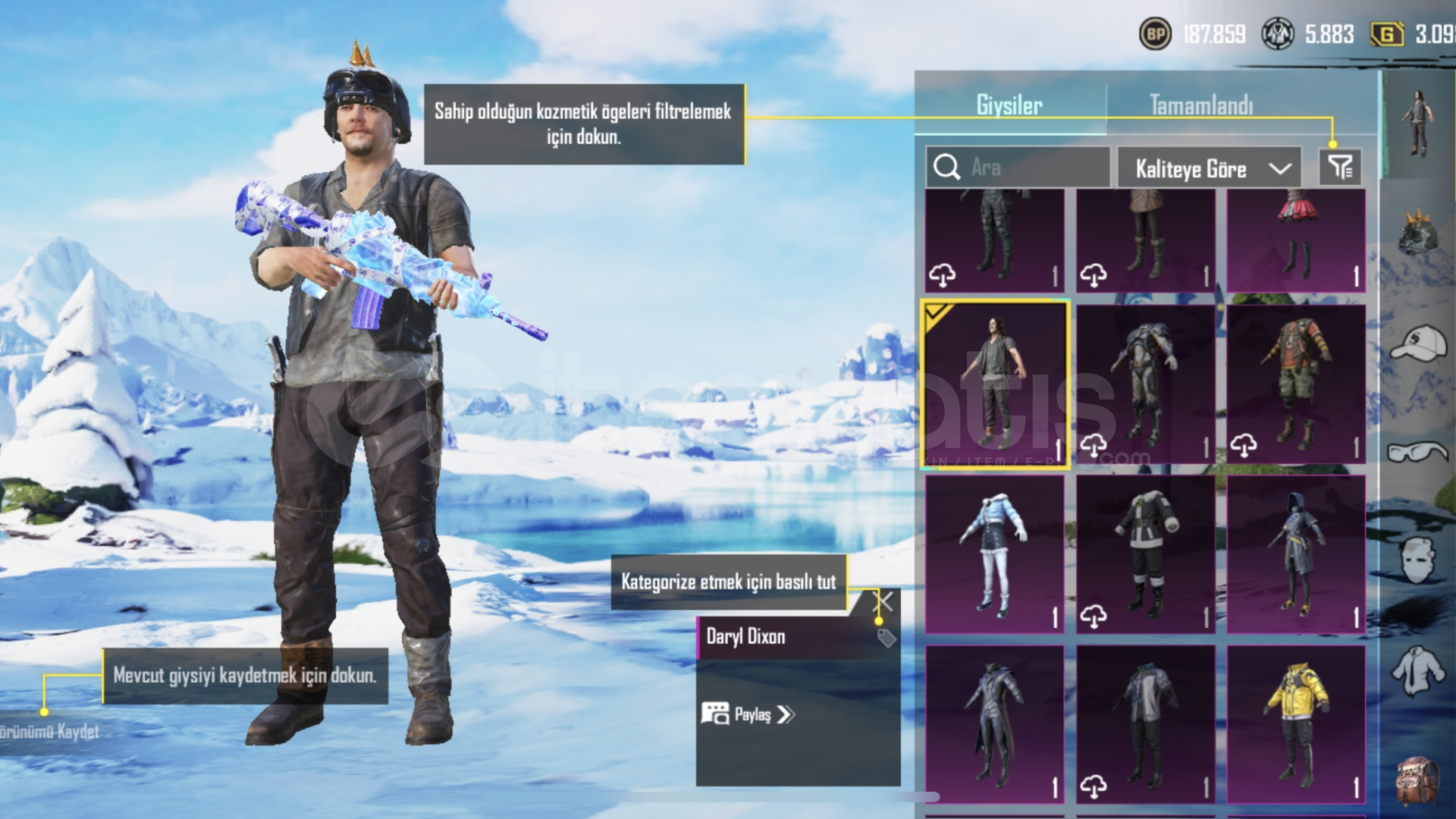 Hesap 84 lvldir emek hesabıdır85 destansıdırbuz ump 1buz akm 2mühürlü m4 2buz m4 5daryl dixon seti ve motoru vardır kong seti vardırgüzel temiz hos hesap