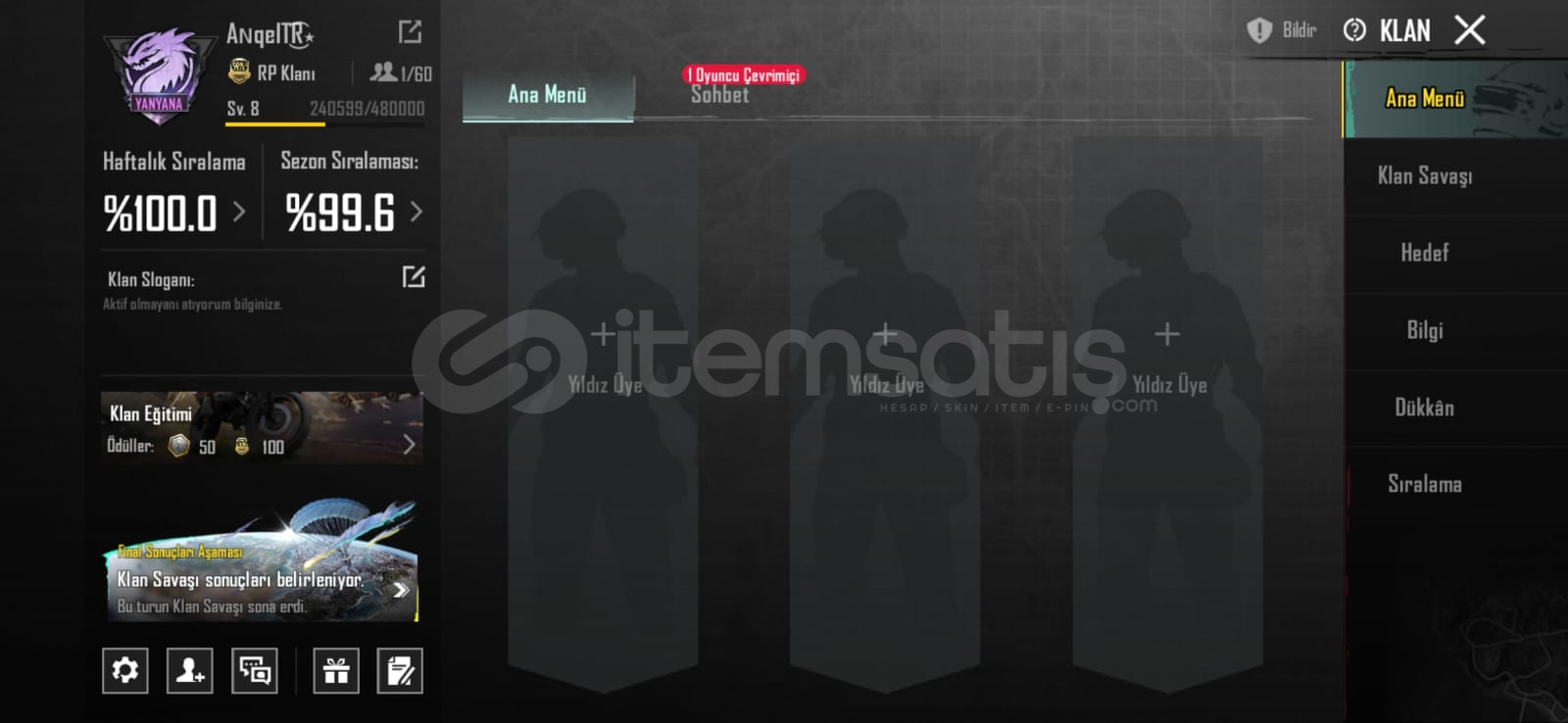 8.5 LVL TERTEMİZ KLAN HIZLI TESLİM