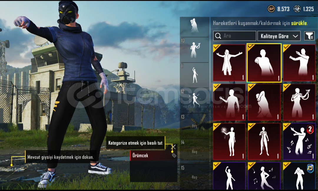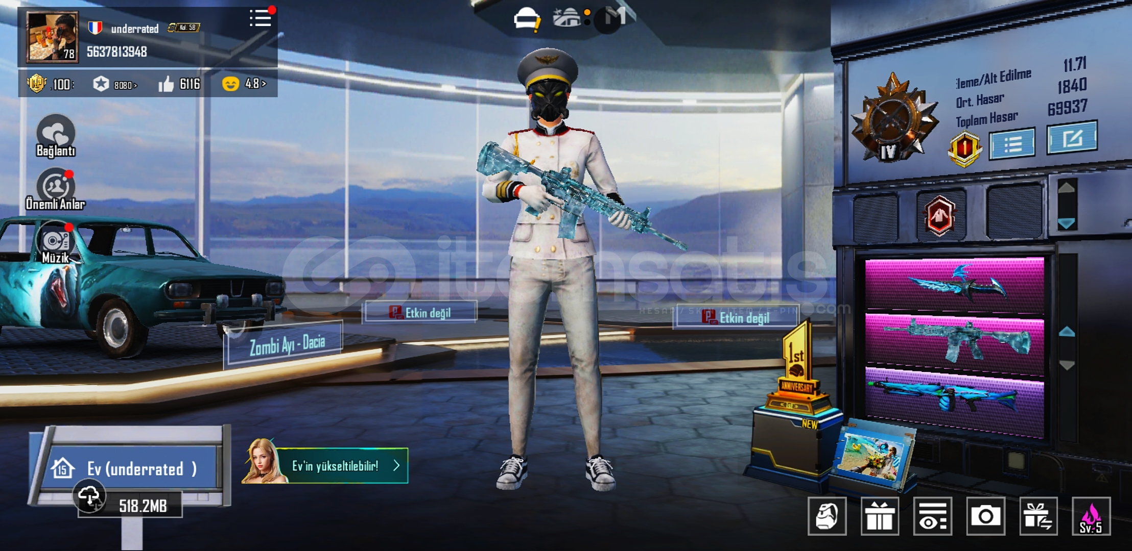 87 DestansıKöpek Balığı Dalgıç SetiSeri Katil SetiÖrümcek SetiNostaljik Ozan SetiKomutan alt üst şapka fullCrew , s4 saç , nadir kombinlik ögeler20 Yükseltilebilir silah 5 Ölüm duyurusuBuz M4 6 seviyeAltın Pençe P90 3 svyBuz hançer 3 svyRuhani Muhafız Uzi 3 svyYükselen Ejderha Mg3 3 svyDenizlerin Evrimi Ump 3 svy2 tane destansı planör2 tane yükseltilebilir bomba deseni4...