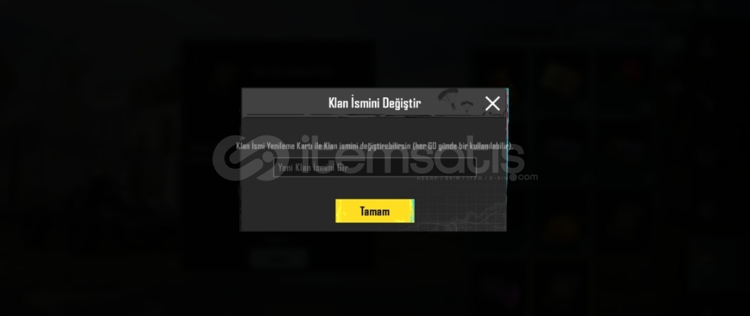 9 LEVEL KLAN İSİM DEĞİŞİM AKTİFTİR 2 İLA 5 DK İÇİNDE TESLİMAT YAPİLACAKTİR SİTEDE AKTİF OLMASAM BİLE ALABİLİRSİNİZ ANLİK SMS GELİYOR SATILDIĞINA DAİR HEMEN SİTEYE GELİP DEVİR YAPIYORUM İD ATMANİZ YETERLİDİR
