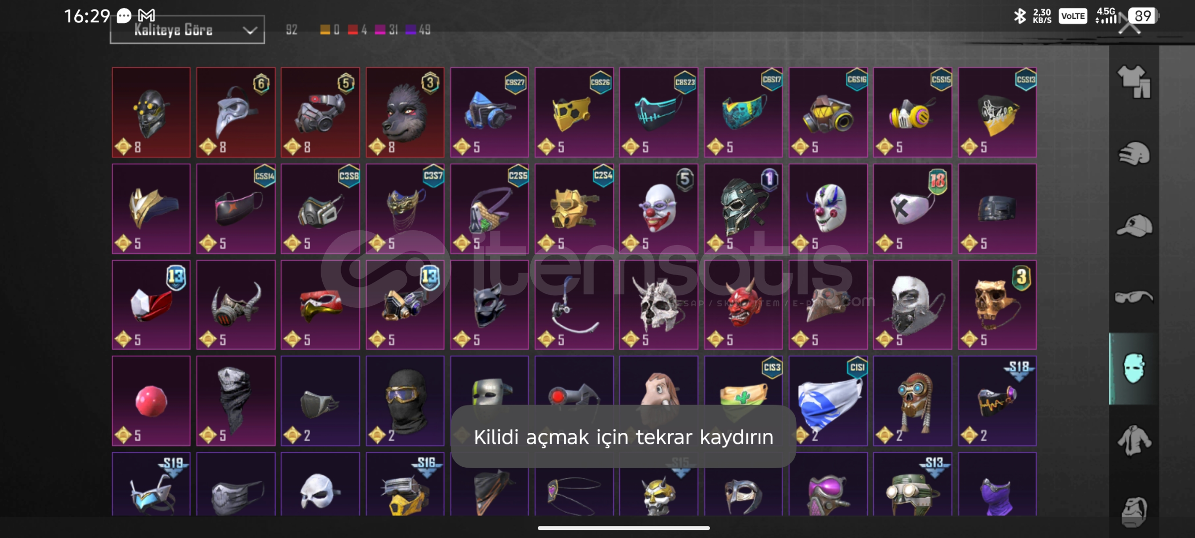 93 destansı TR HESAP2 nihai 26 Yükseltilebilir silahMaskara M4 4 seviye Kertenkele M4 5 seviye Yıl dönümü miradoAlevli mumya Zaman yolcusu seti NADİR HESAP ID:5408189518
