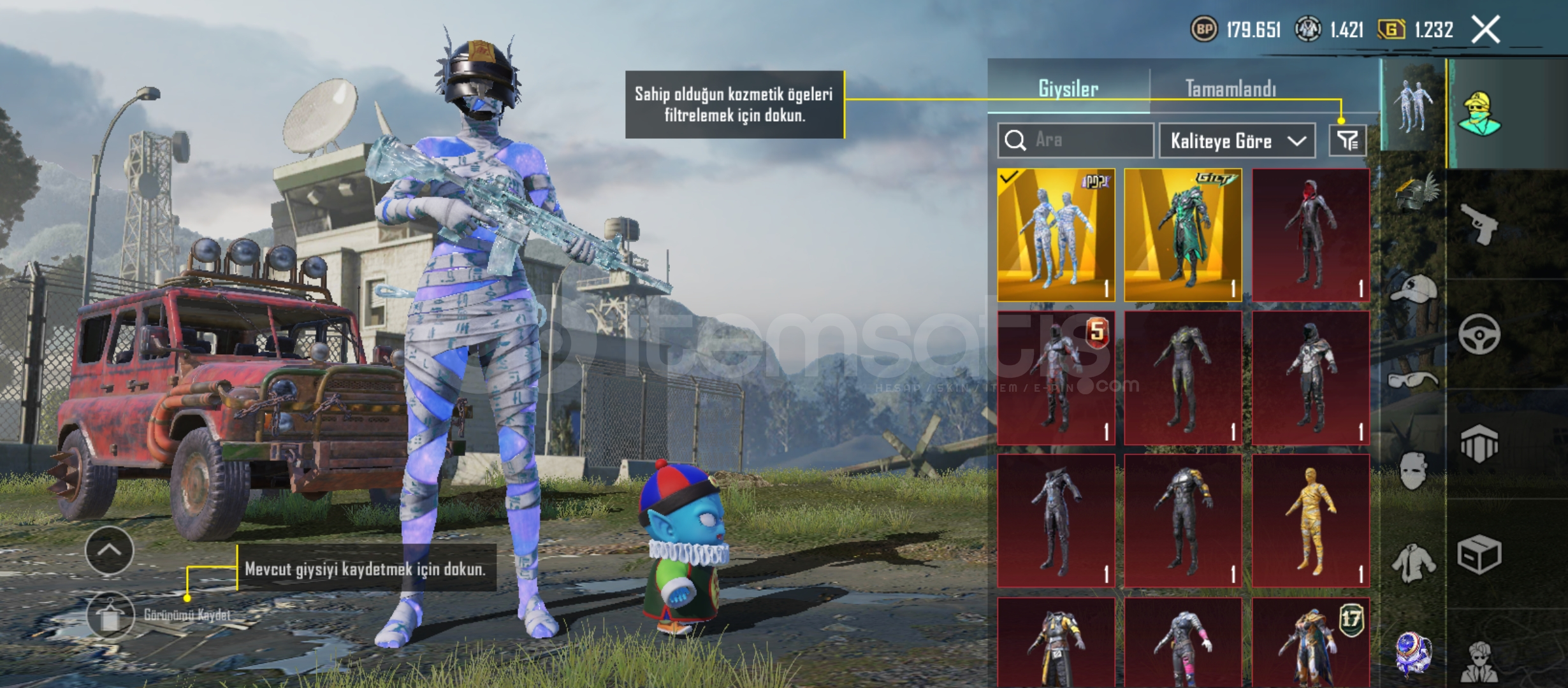 HESAPTAKİ SKİNLER-Mavi mumya-Sarı mumya-Cehennem sureti seti-Seti katil seti-İşgalci seti-Çelik asker seti-Zaman seyyahı seti ve dahasıHESAPTAKİ SİLAHLAR-BUZ M416 6 SEVİYE-İMPARATOR İHTİŞAMI M4 ÖLÜM DUYURULU-YEDİ DENİZLER M24-Yıldız çekirdeği m762-2 TANE YÜKSELTİLEBİLİR ÖLÜM DUYURULU UMP- HASET DİKENİ SCAR L-Titanyum köpek balı&#...
