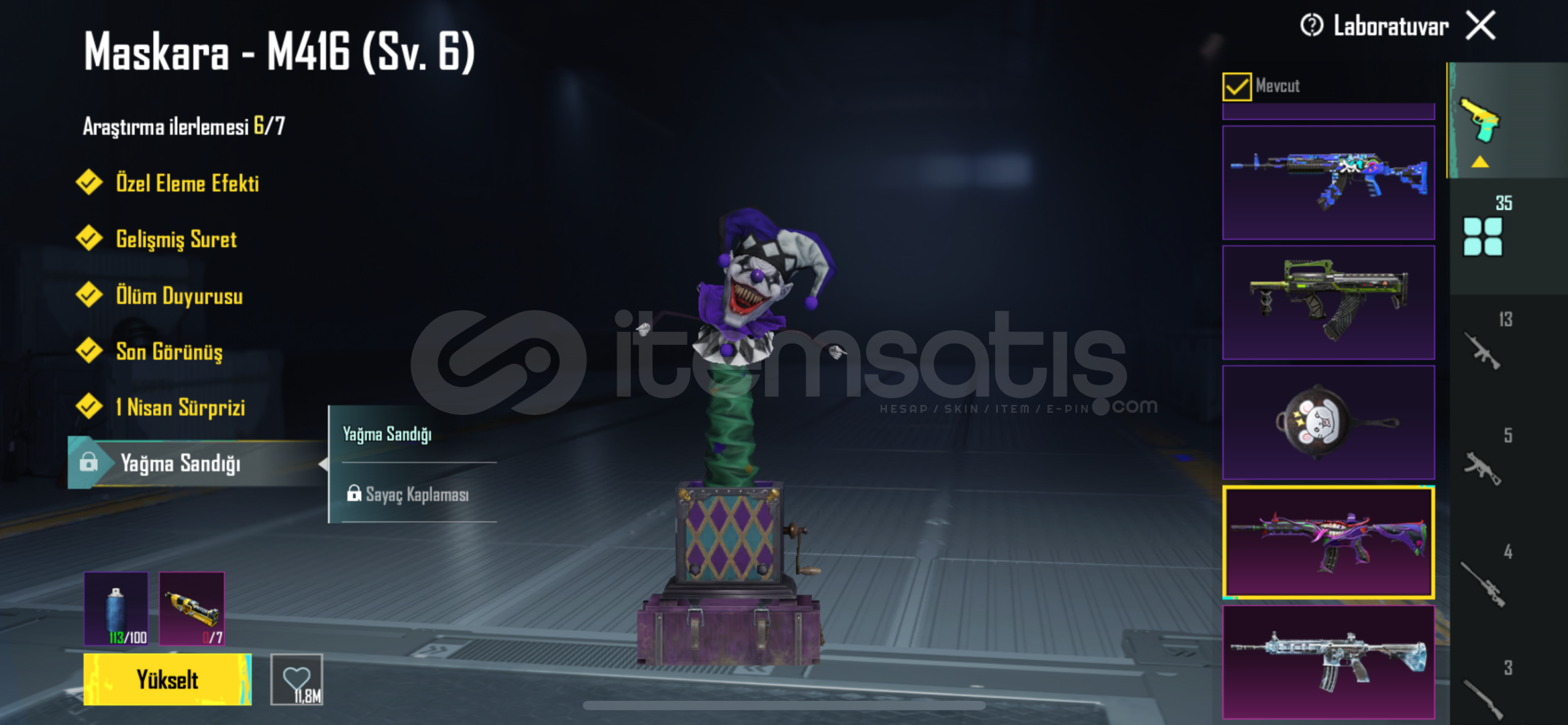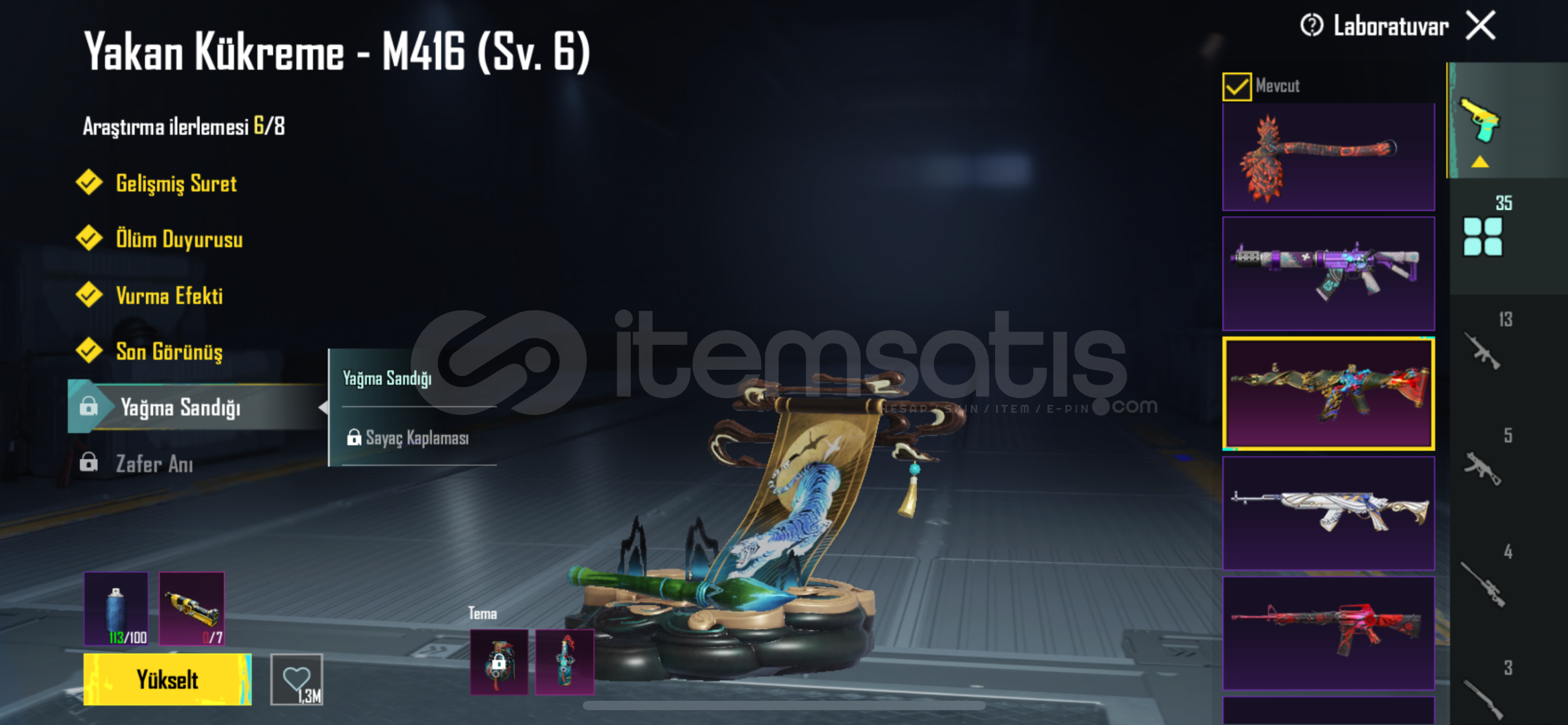 MASKARA M416 6 SVYAKAN KÜKREME M416 6 SVBUZ M416 1 SVKÜÇÜK MİDİLLİ M762 4 SVÖLDÜREN NAĞMELER M24 4 SV VE BİR ÇOK SİLAH3 X SUİT 1 TANESİ 2 SV2 NİHAİ SETLOTUS SPOR ARAÇ8 ÖZEL SET ÖZEL EMOJİLİ SARI MUMYA DAHİLDESTANSI KASK VE ÇANTALARBAĞLAR E POSTA TEL DEĞİŞİM AÇIK